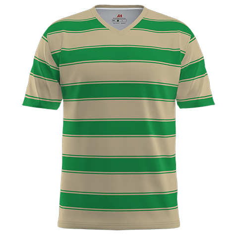 A4 soccer jersey colors, logos, player name & numbers are dye sublimated directly into the light weight DuraTek wicking 5-star fabric. Sublimation dyes are permanently bonded to the molecules of the fabric for maximum ruggedness and durability. V-neck jerseys feature a longer length, set-in sleeves and straight bottom hem.