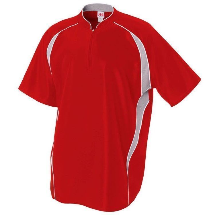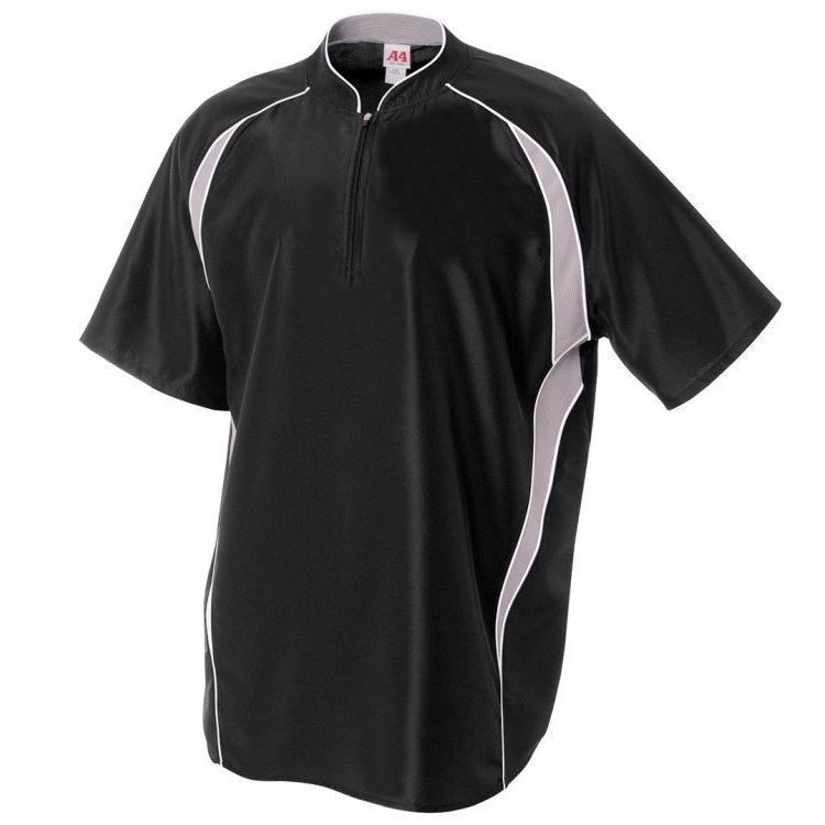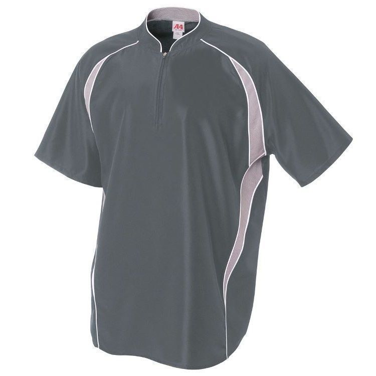 A4 N4241 Cage Jacket features woven stain release polyester with 1/4 zip pullover design. A4 SS pullover jacket also features a micro-mesh inserts, contrast piping, low profile collar with 8 inch zip front, antimicrobial finish, set in sleeves and a double stitched rounded bottom hem. Water resistant.