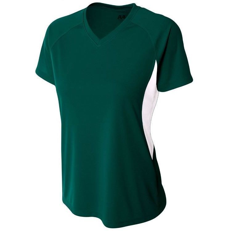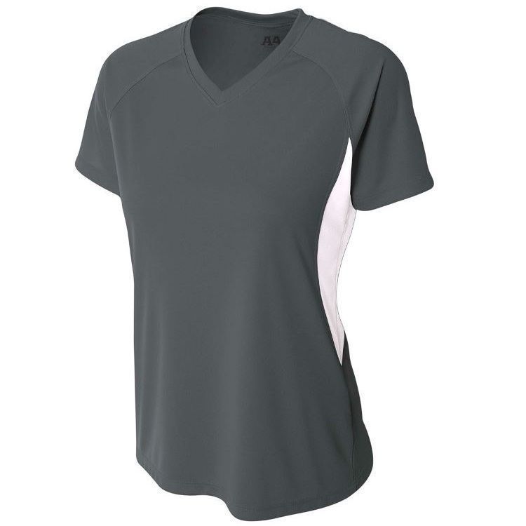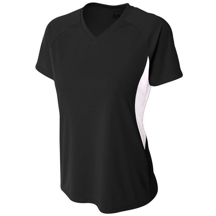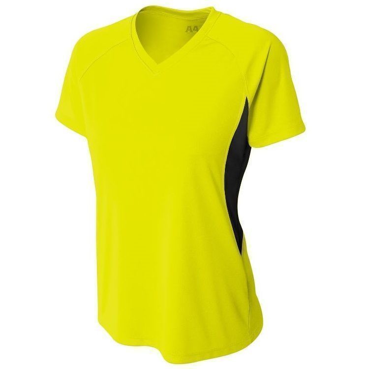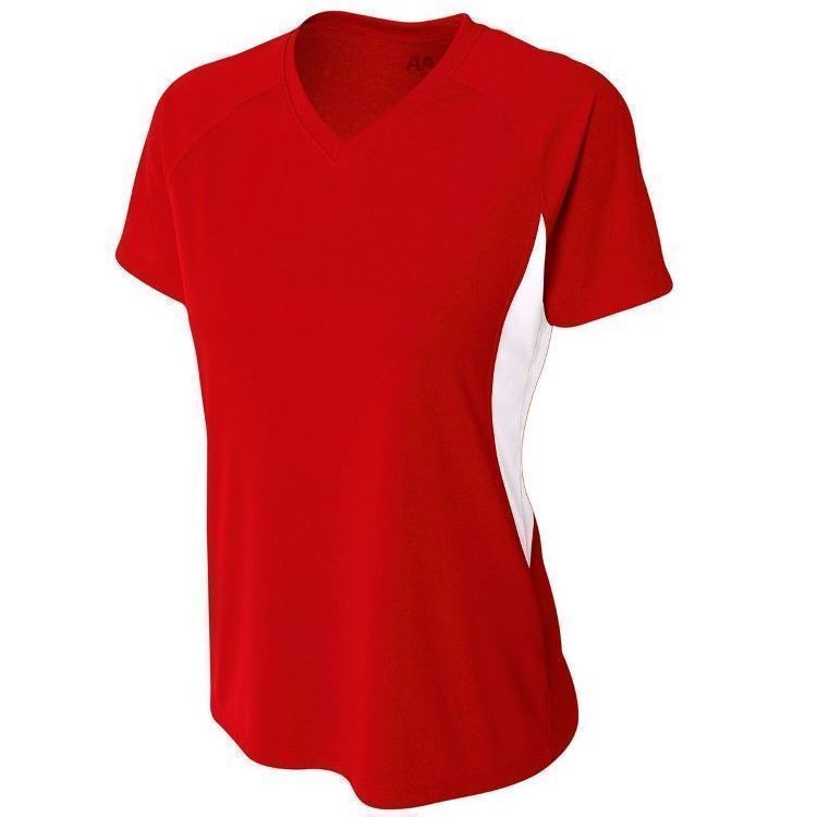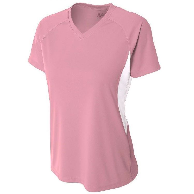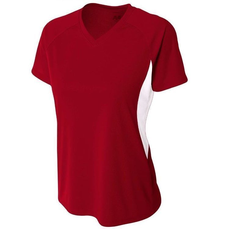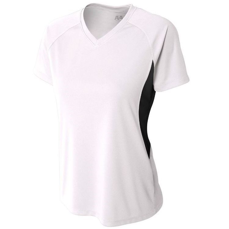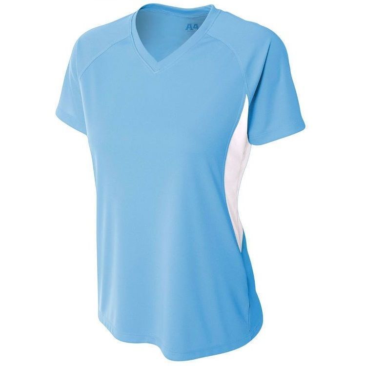 A4 NW3223 v-neck womens softball jersey is made of mid weight 100% polyester interlock wicking knit fabric with 44+ UPF for UV sun protection. A4 NW3223 v-neck womens softball jersey has a snag free tight knit design, stain release antimicrobial finish for low odor, raglan sleeves and double stitched bottom hem.