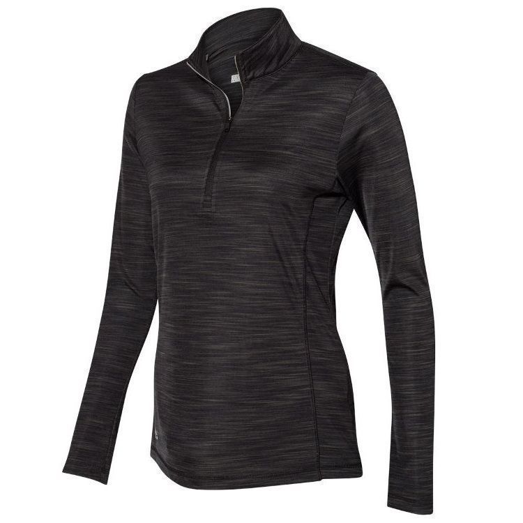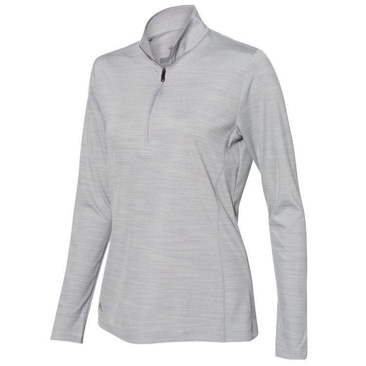 Adidas Golf lightweight 1/4 zip pullover in 5.6 oz. recycled polyester interlock fabric. Adidas Golf A476 womens pullovers have a quarter zip front, self mock collar, open bottom hem and cuffs, tag free heat seal label and Adidas Golf logo on the right hip. Prices include custom logo embroidery.