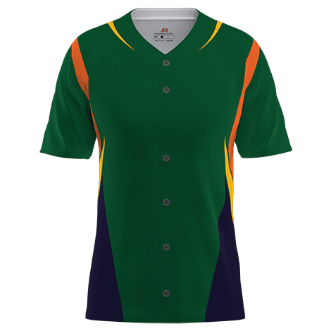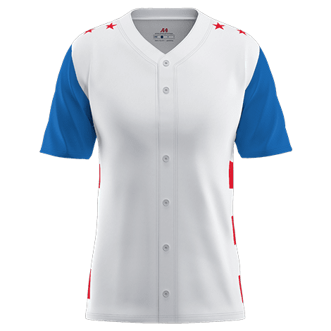 Sublimated full button softball jerseys by A4. A4 AE122W full button sublimated softball jerseys in mid-weight DynaTek poly-spandex wicking fabric with true button or faux button front.