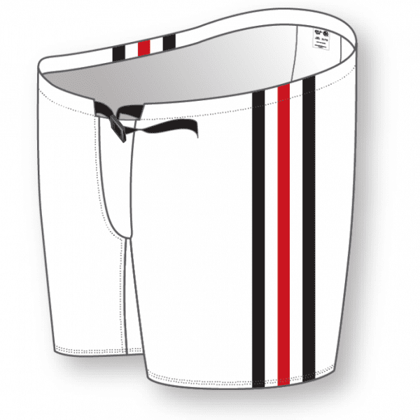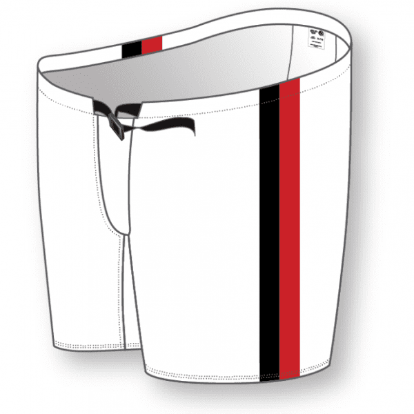 AK ZH955 custom hockey shells feature rugged semi-slick polyester fabric with poly-spandex inserts for maximum mobility. Custom knitted pant shells include in one of 13 stock striping designs. ZH955 shells are made in Canada and require a 12 minimum to order.