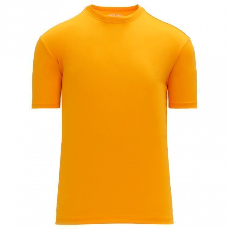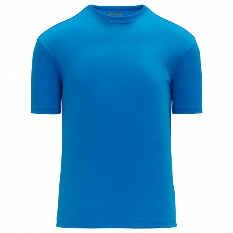 features a 100% polyester Actiflex wicking fabric that pulls sweat away from the skin for easy evaporation. AK A1800 wicking tee can be worn under a jersey or alone. This shirt has a self fabric collar and double needle bottom hem. Tagless heat-seal label.