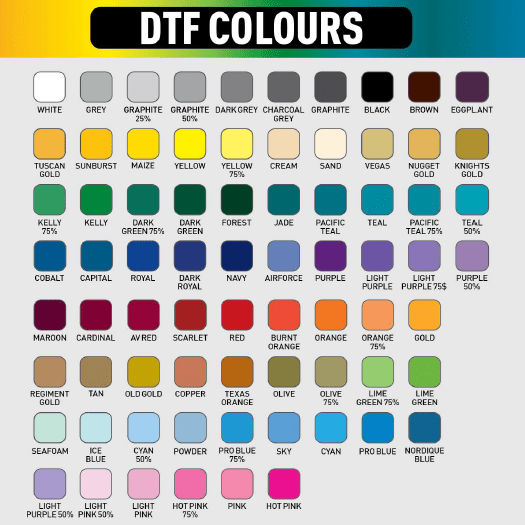 DTF printed logos for Athletic Knit jerseys, hoodies and tees. Submit custom artwork in up to 6 colors for a single flat price. Direct-To-Film printing consists of high end film transfer technology. Choose from 70 print colors that are 100% guaranteed match to all Athletic Knit jersey, hoodie and tee colors.