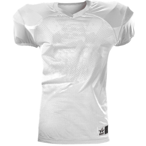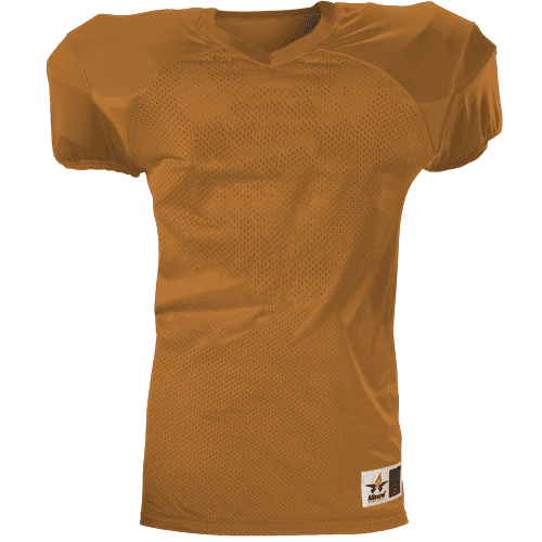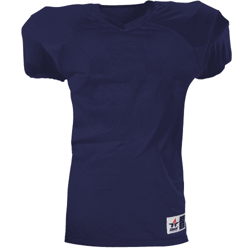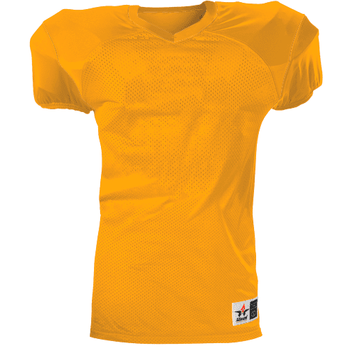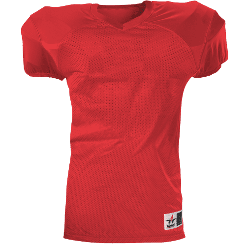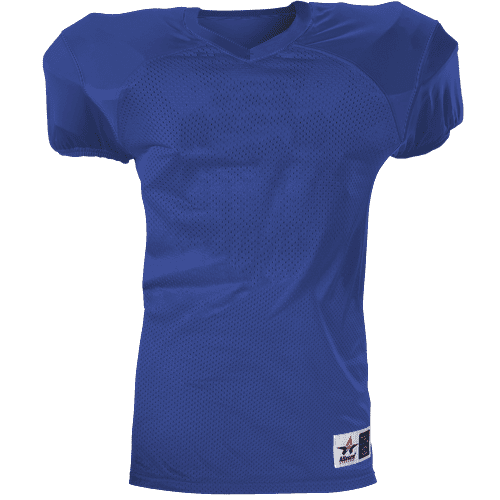 Alleson 751Y football jersey features 100% extreme mesh cationic colorfast polyester tricot mesh body, double dazzle yoke / sleeves, spandex side inserts for a pro-style fit and a solid color design. Alleson 751Y jersey also features a classic v-neck cut and a full length body cut.