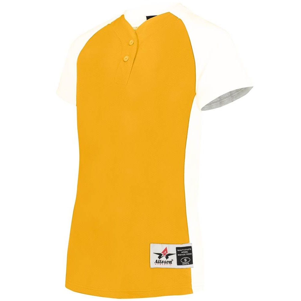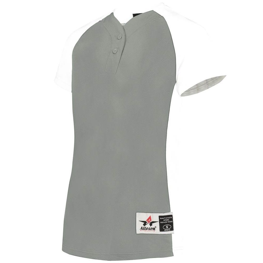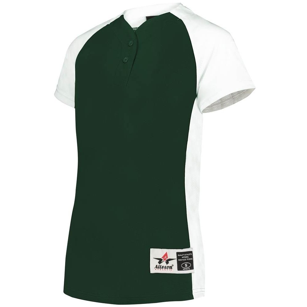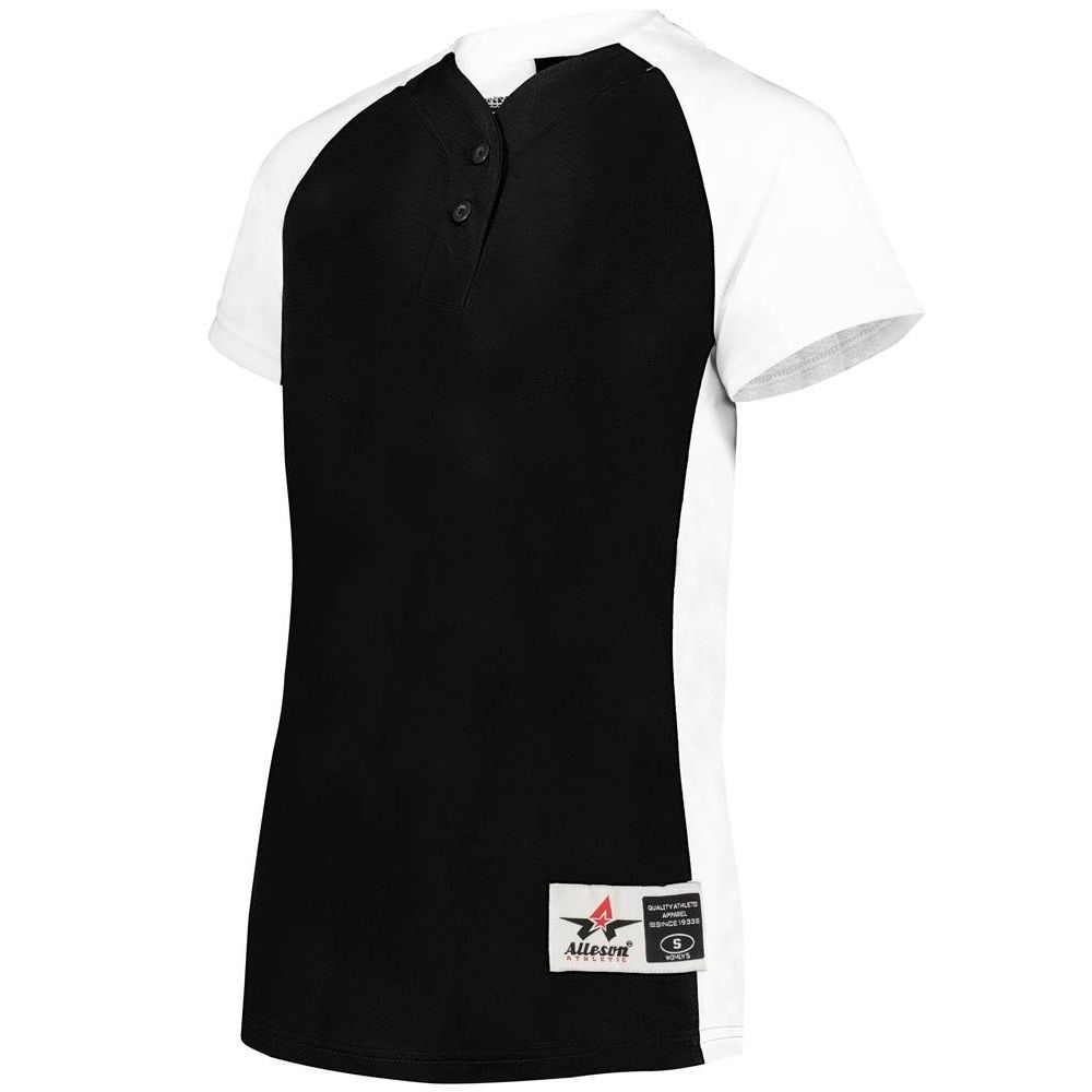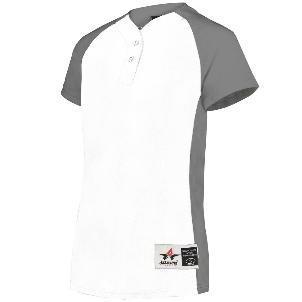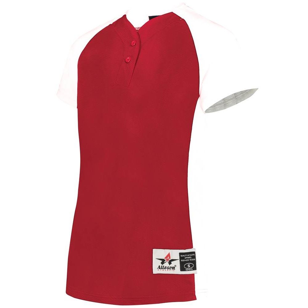 Alleson 522PDW 2 button softball jersey is made of mid weight eXtreme pin dot wicking fabric in a classic 2 button front design. Alleson 522PDW softball jersey has a cationic colorfast technology, contrast inserts, a 2-color design, raglan sleeves and double stitching. Girls through womens 2XL sizes.