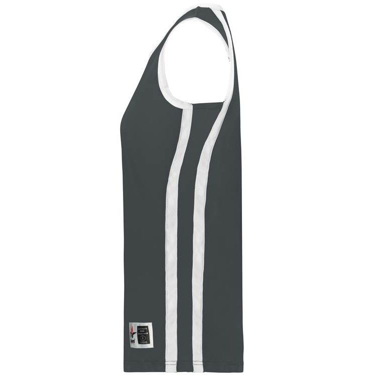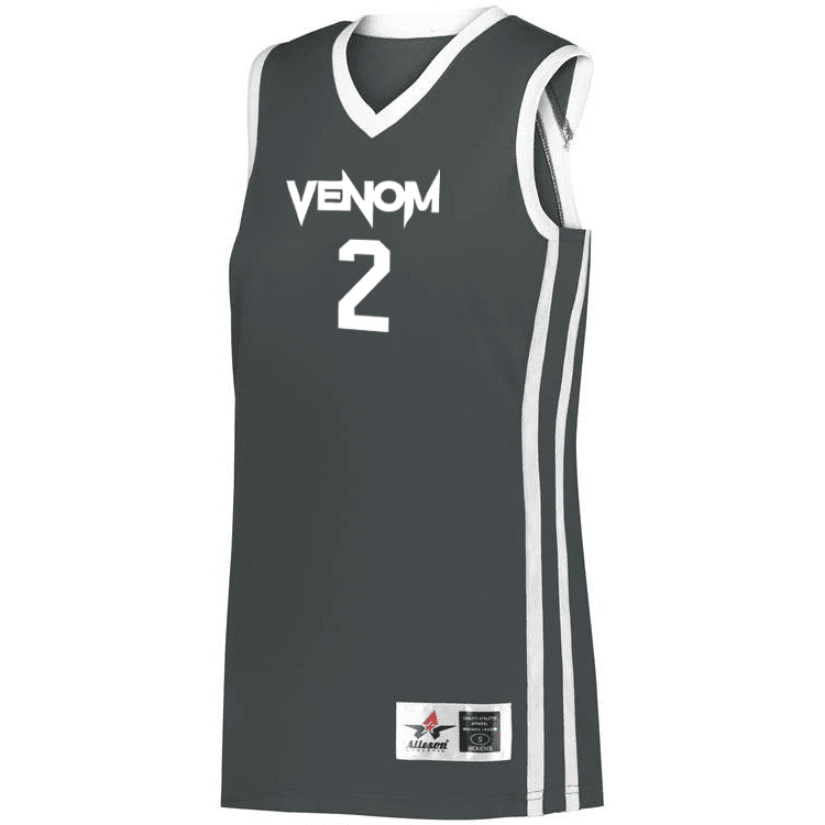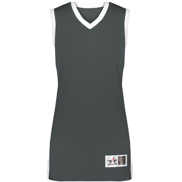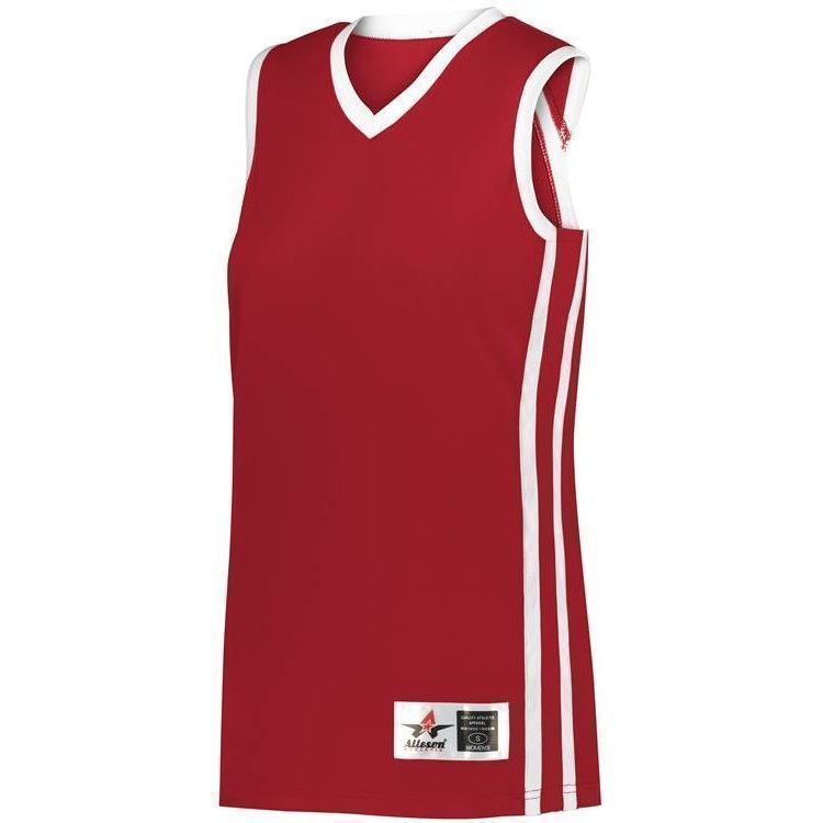 Alleson 539JW womens basketball jersey features 100% polyester pique wicking fabric with sewn micro mesh trim. Alleson 539JW ladies basketball jersey also features a v-neck collar, sewn side stripe trim, collegiate cut, jock tag and double needle hemmed bottom.