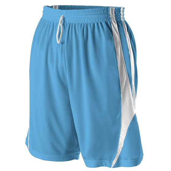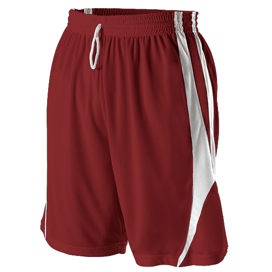 Alleson 54MMP wicking reversible basketball shorts features 100% polyester wicking colorfast polyester. Alleson 54MMP shorts are fully reversible for wearing on either side and also have a covered elastic waistband with inside draw cord, 9" inseam, full athletic cut and diamond kit side stripe and leg opening trim.