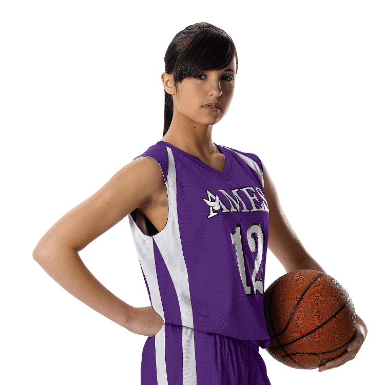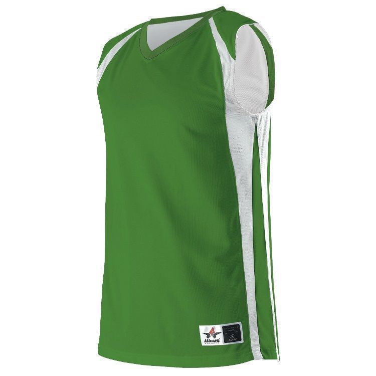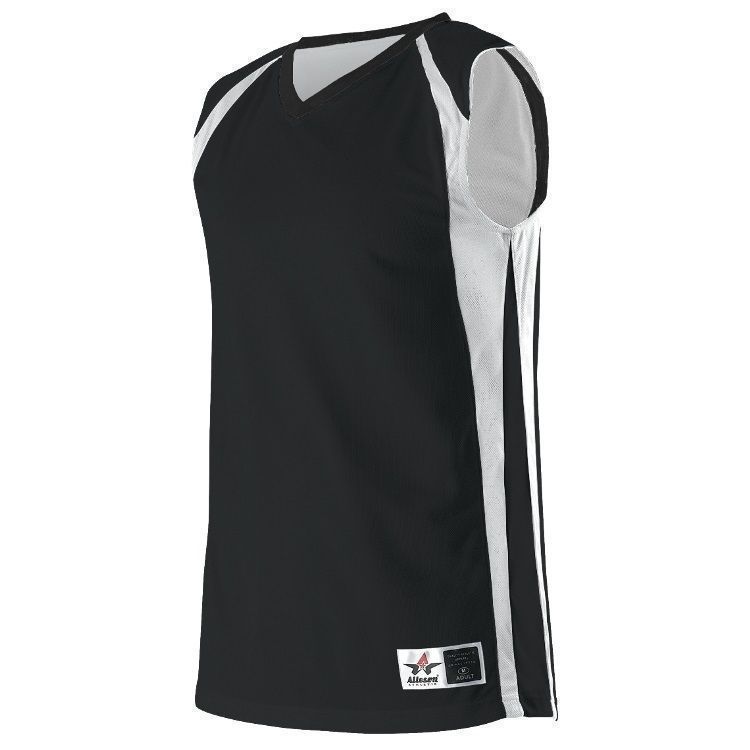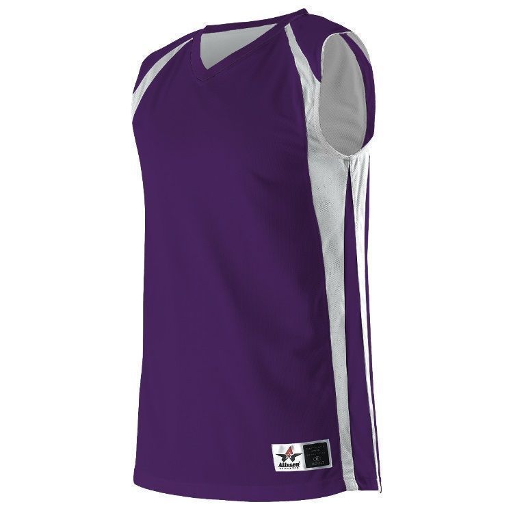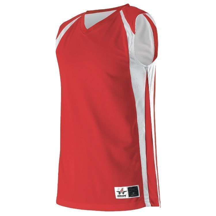 Alleson 54MMRW wicking reversible womens basketball jersey features 100% polyester wicking mock mesh cationic colorfast polyester in ladies specific fit. Alleson 54MMRW reversible womens basketball jersey also features contrast color side stripes, wide shoulder design, collegiate cut, Alleson jock tag and double needle hemmed bottom.