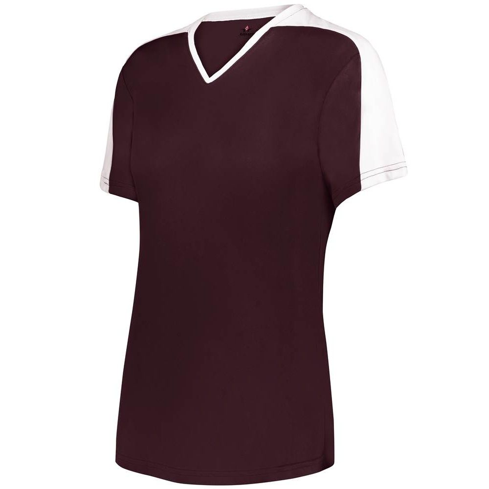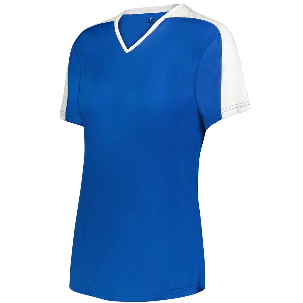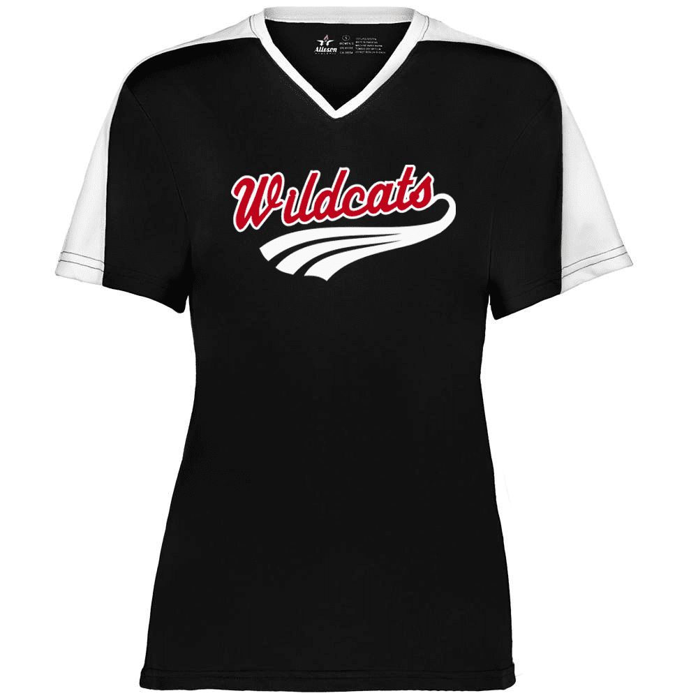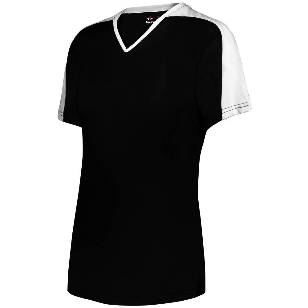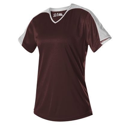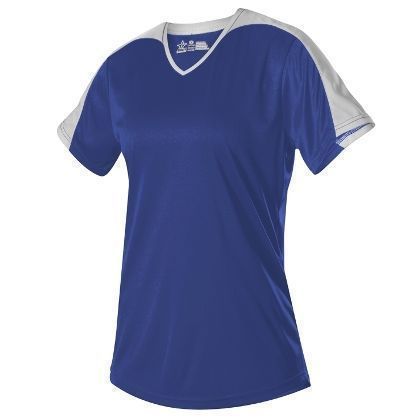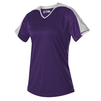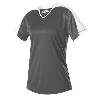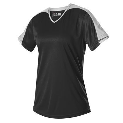 Alleson 558VW v-neck softball jersey is made of light weight eXtreme wicking fabric in a new modern v-neck design. Alleson 558VW softball jersey has a cationic colorfast technology, contrast inserts on sleeves that transition to neck overlay, scoop bottom, set-in sleeves and double stitching. Girls through womens 2XL sizes.