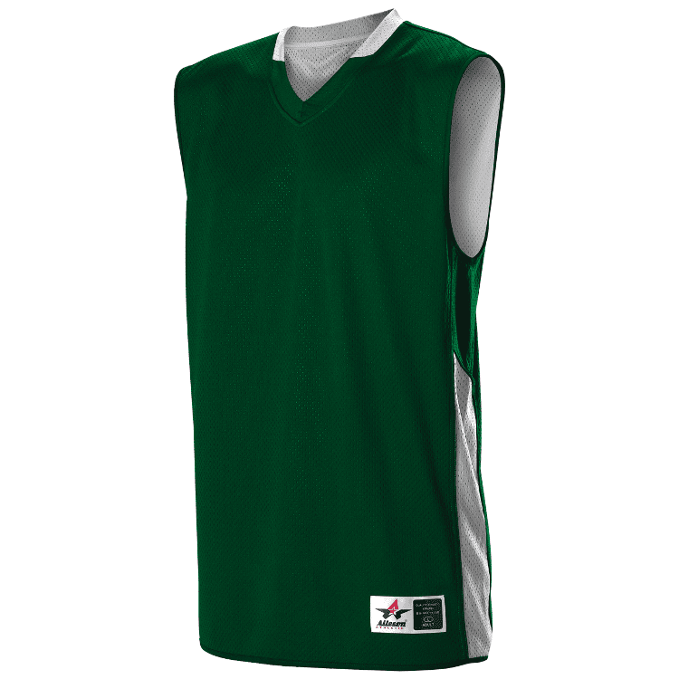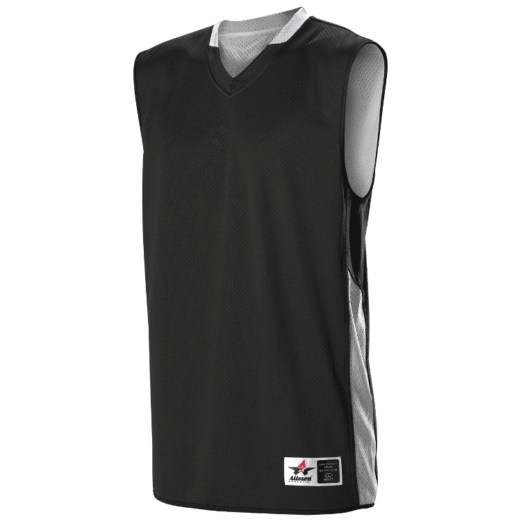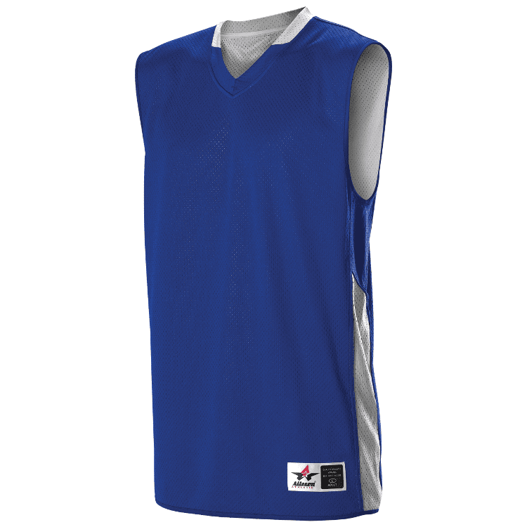 Alleson 589RSPW womens reversible basketball jersey features 100% extreme polyester wicking mock mesh cationic colorfast polyester with single ply design. Alleson 589RSPW reversible basketball jersey also features a ladies cut, contrast color side stripes, wide shoulder design, collegiate cut, Alleson jock tag and double needle hemmed bottom.