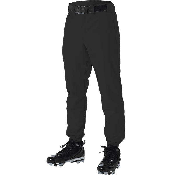 Alleson 605P baseball pants are made of 12oz. double knit fabric with a solid color design. Alleson 605PY baseball pants have a 2-1/2 inch wide waistband, 5 pro style belts loops, double reinforced knees, dual snap closure with zipper fly, two set-in welt back pockets and a relaxed fit with elasitc bottom hems. Available in youth to adult sizes.