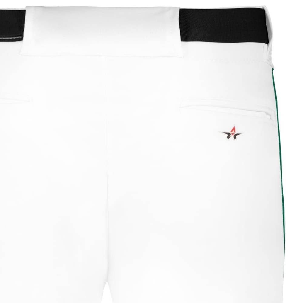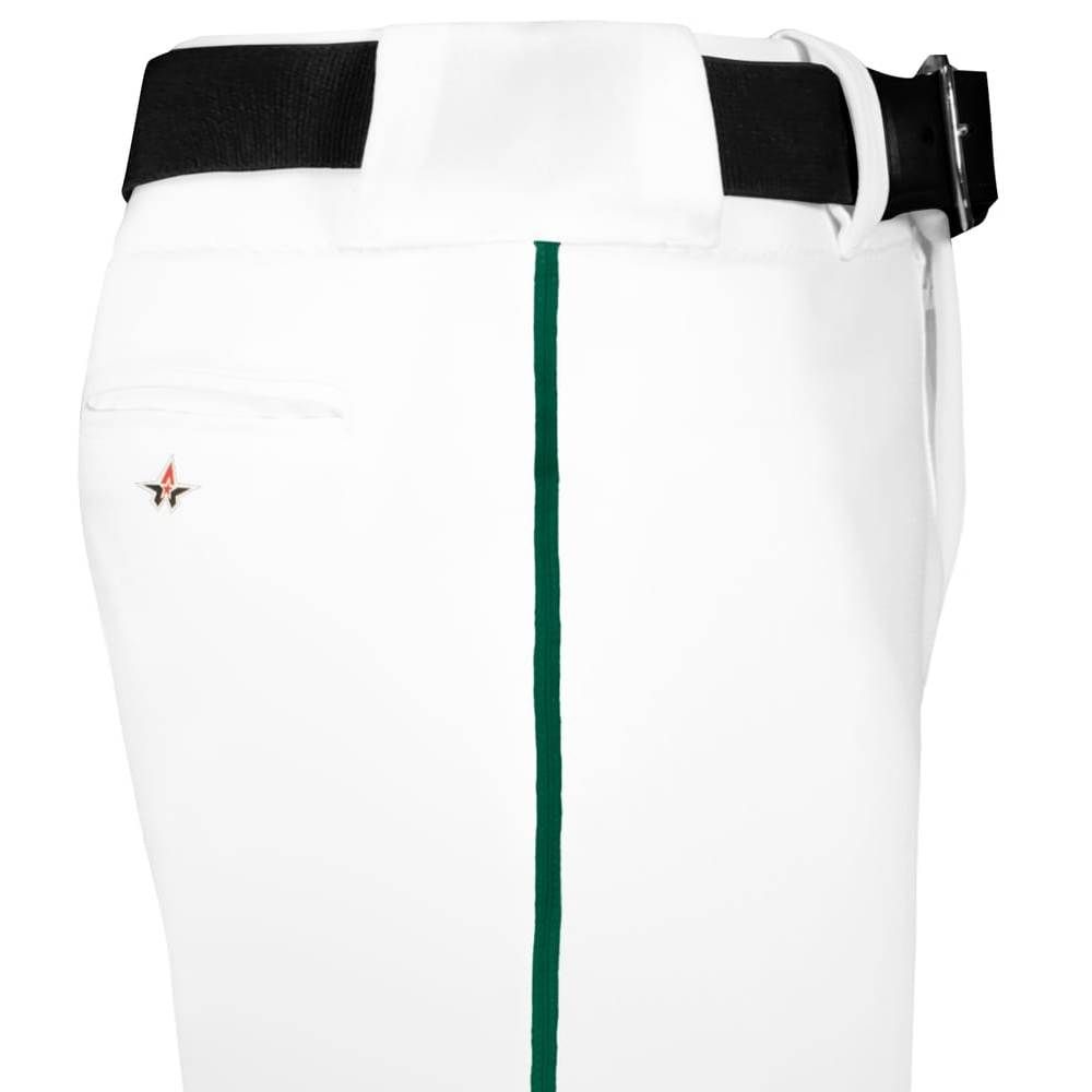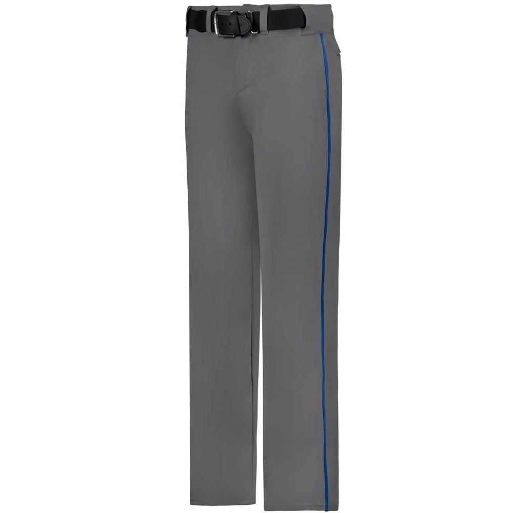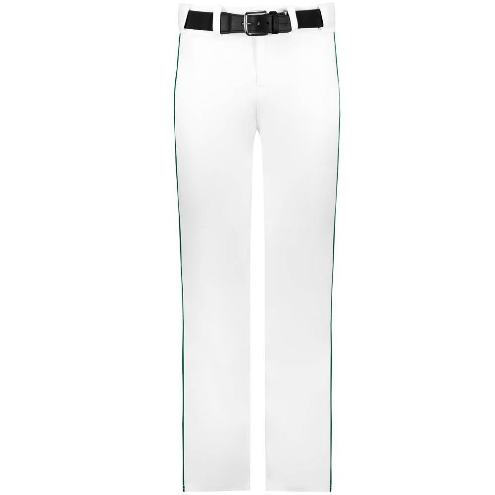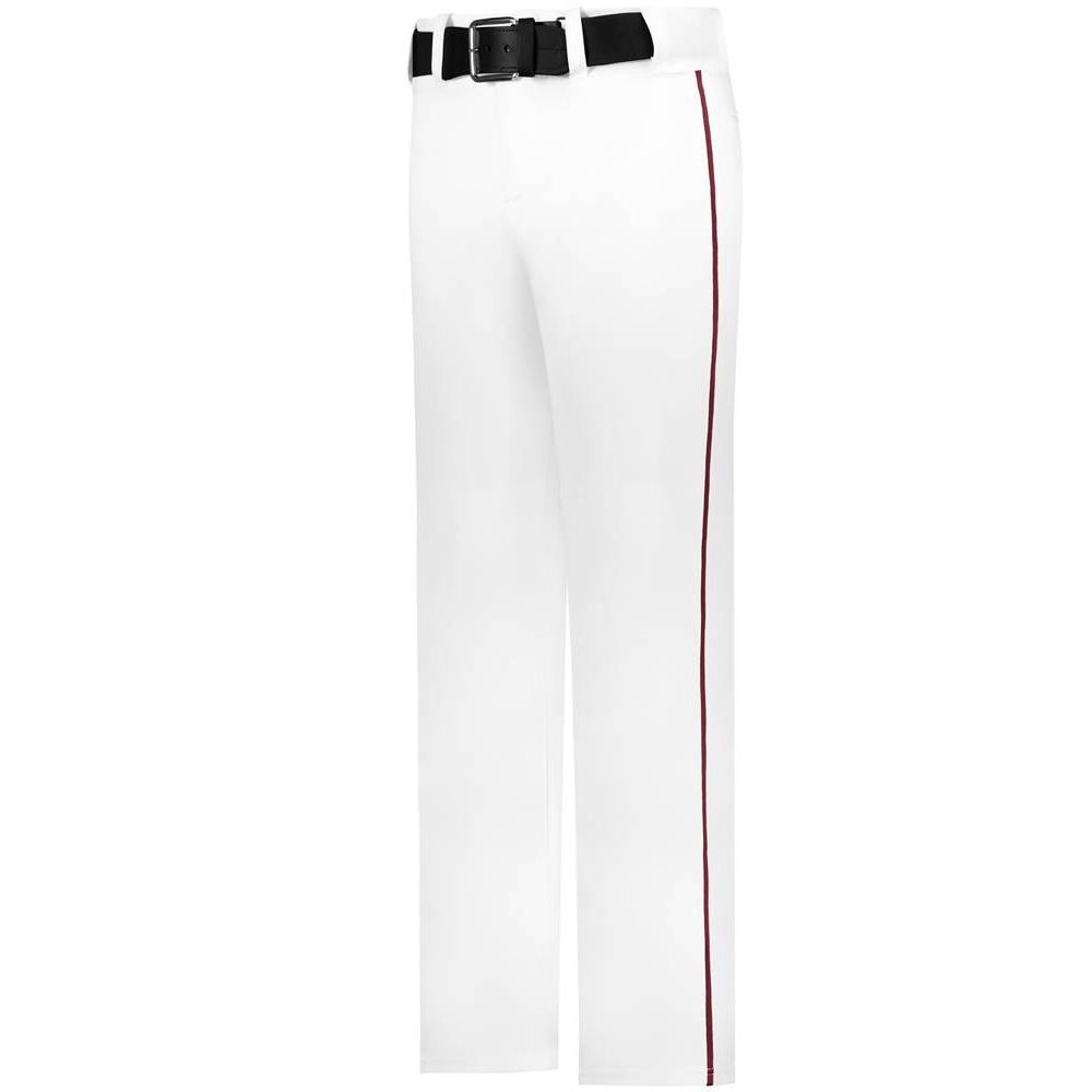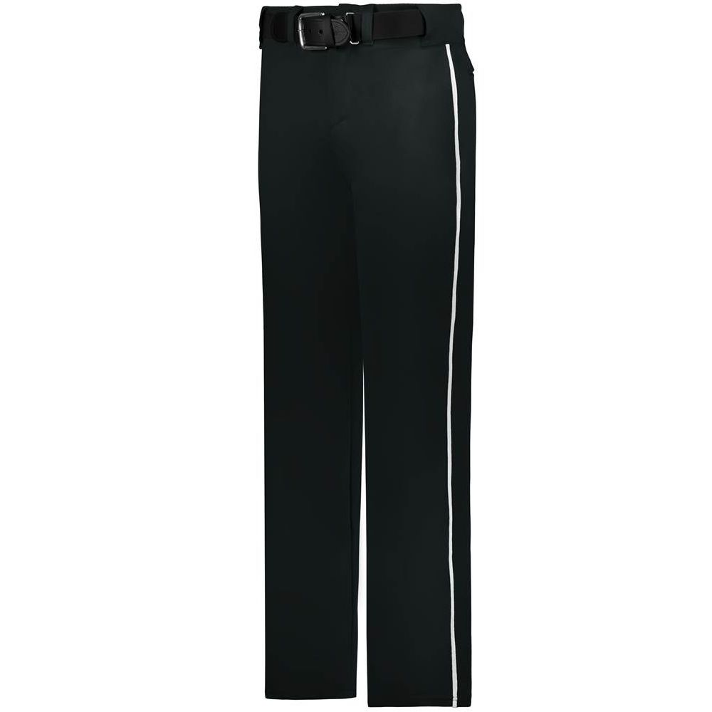 Alleson 605WLB open bottom piped baseball pants are made of 12oz. double knit fabric with 3/16 inch side piping. Alleson 605WLBY baseball pants have a 2-1/2 inch wide waistband, 5 pro style belts loops, double reinforced knees, dual snap closure with zipper fly, two set-in welt back pockets and a relaxed fit. Available in youth to adult sizes.