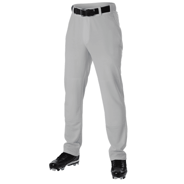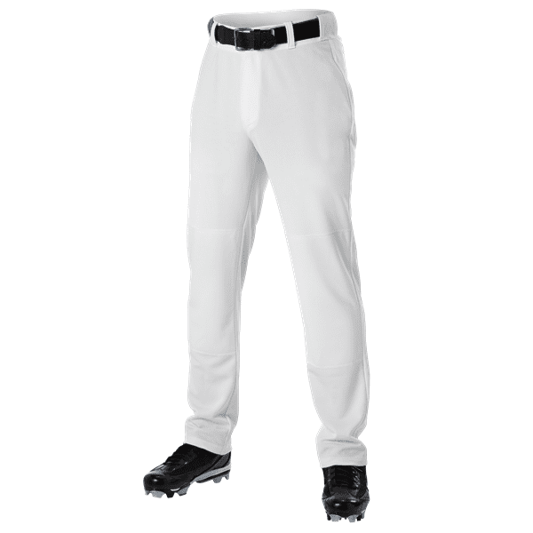 Alleson 605WLP open bottom baseball pants are made of 12oz. double knit fabric with a solid color design. Alleson 605WLP baseball pants have a 2-1/2 inch wide waistband, 5 pro style belts loops, double reinforced knees, dual snap closure with zipper fly, two set-in welt back pockets and a relaxed fit. Available in youth to adult sizes.