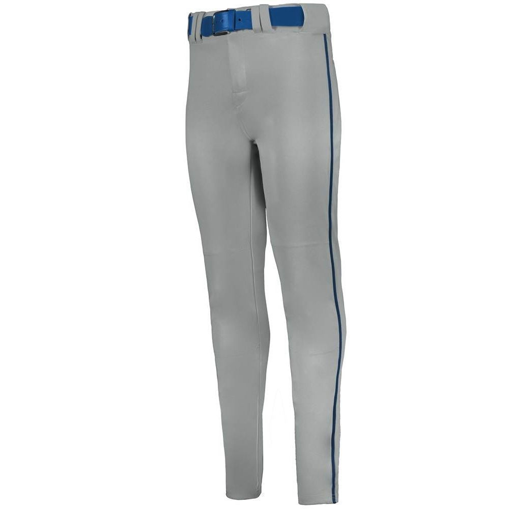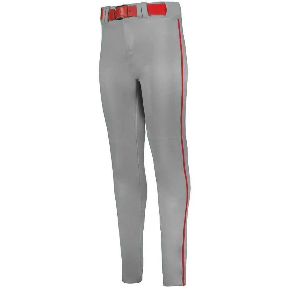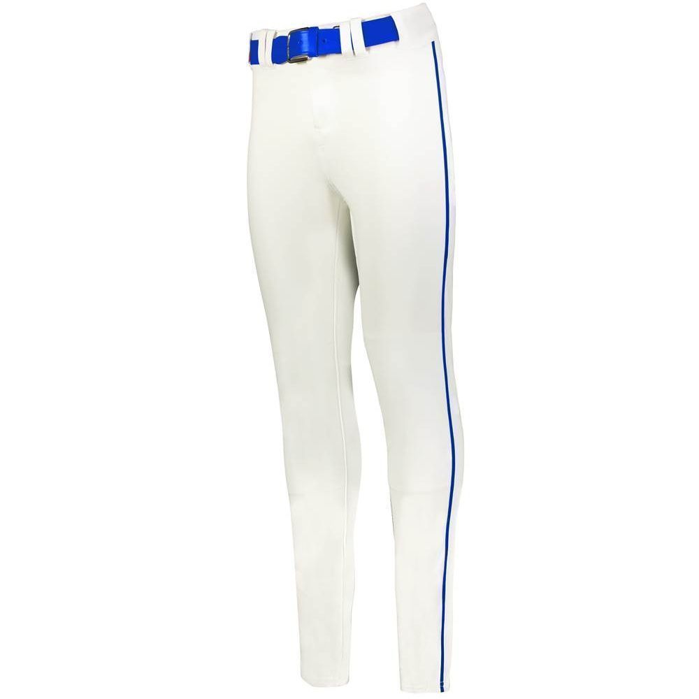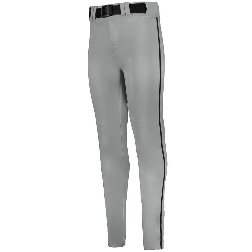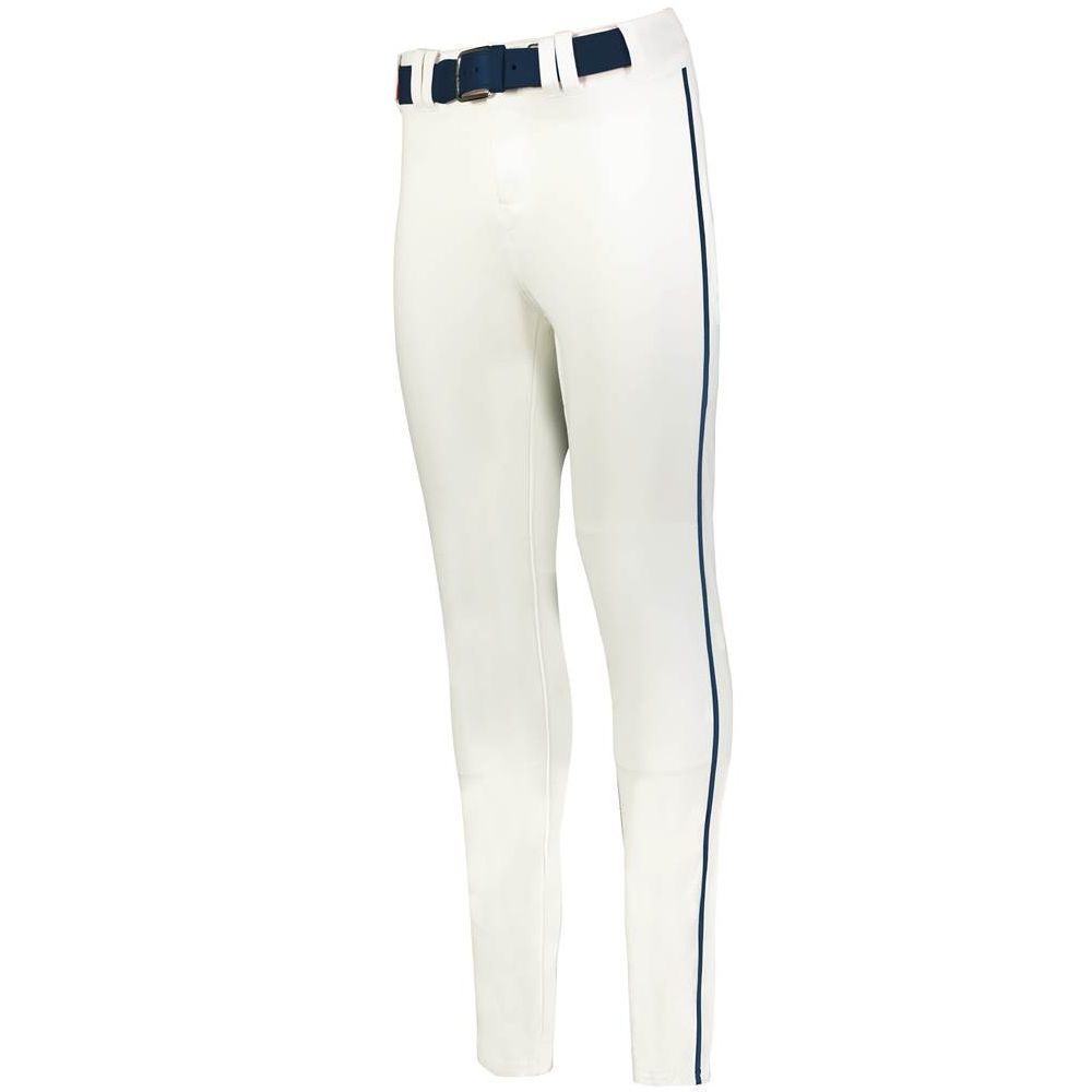 Alleson 657CTB tapered baseball pants with braid are made of 14oz. dura-stretch double knit fabric with tapered leg design. Alleson 657CTBY baseball pants have a heavyweight 2-1/2 inch gripper waistband, 5 pro tunnel belt loops, double reinforced knees, side seam piping, dual snap closure with zipper, two set-in welt back pockets and hemmed leg bottoms. Available in youth to adult sizes.