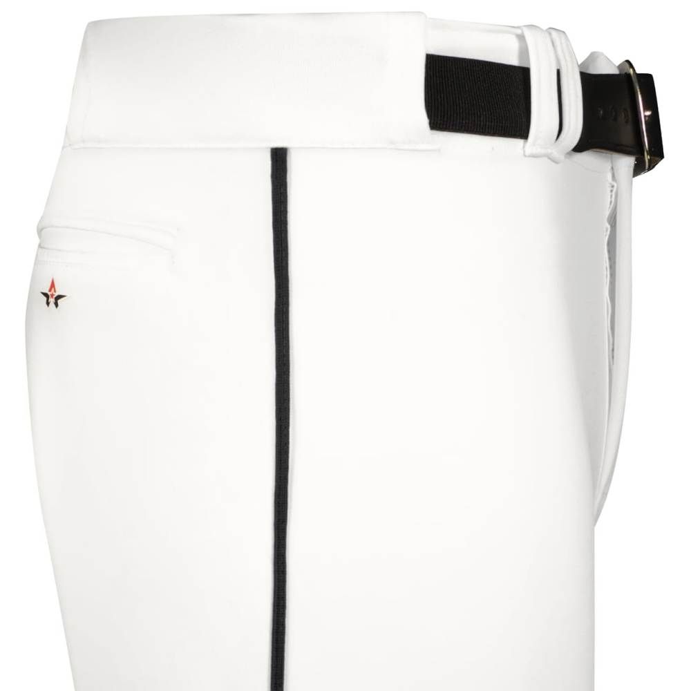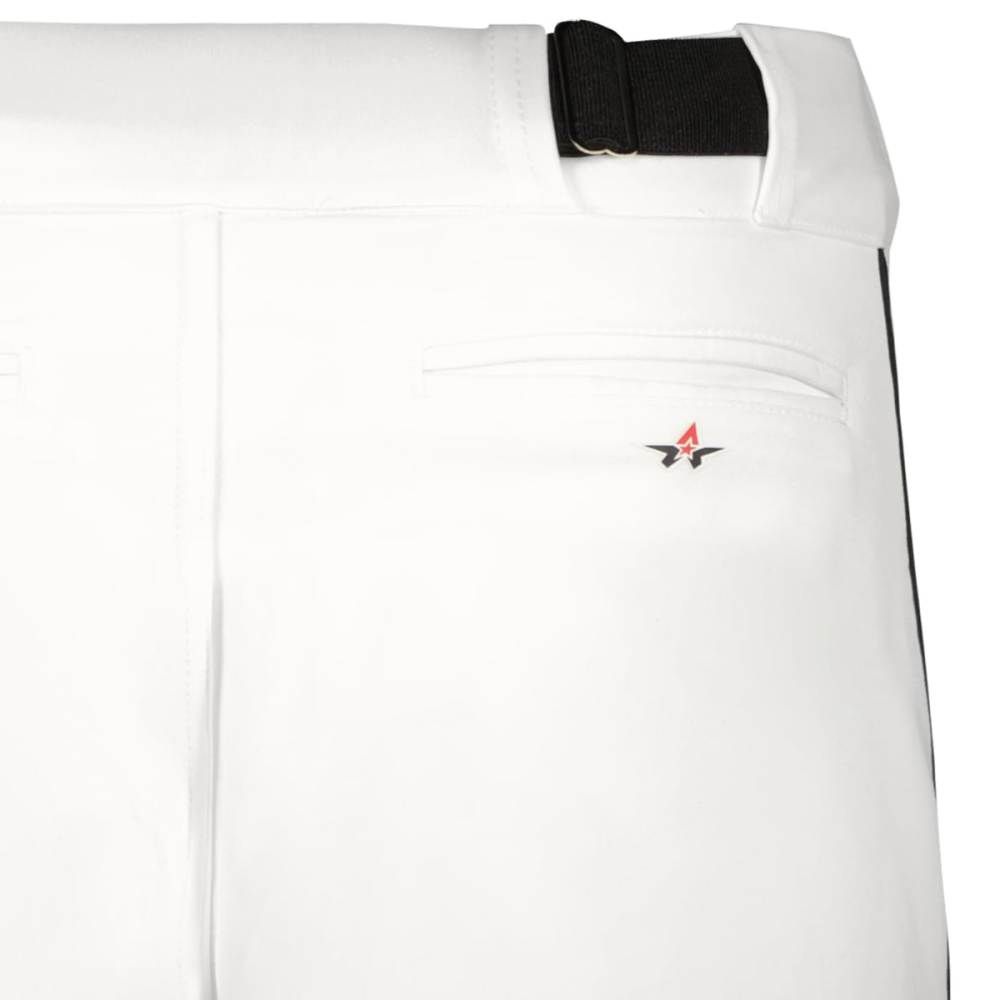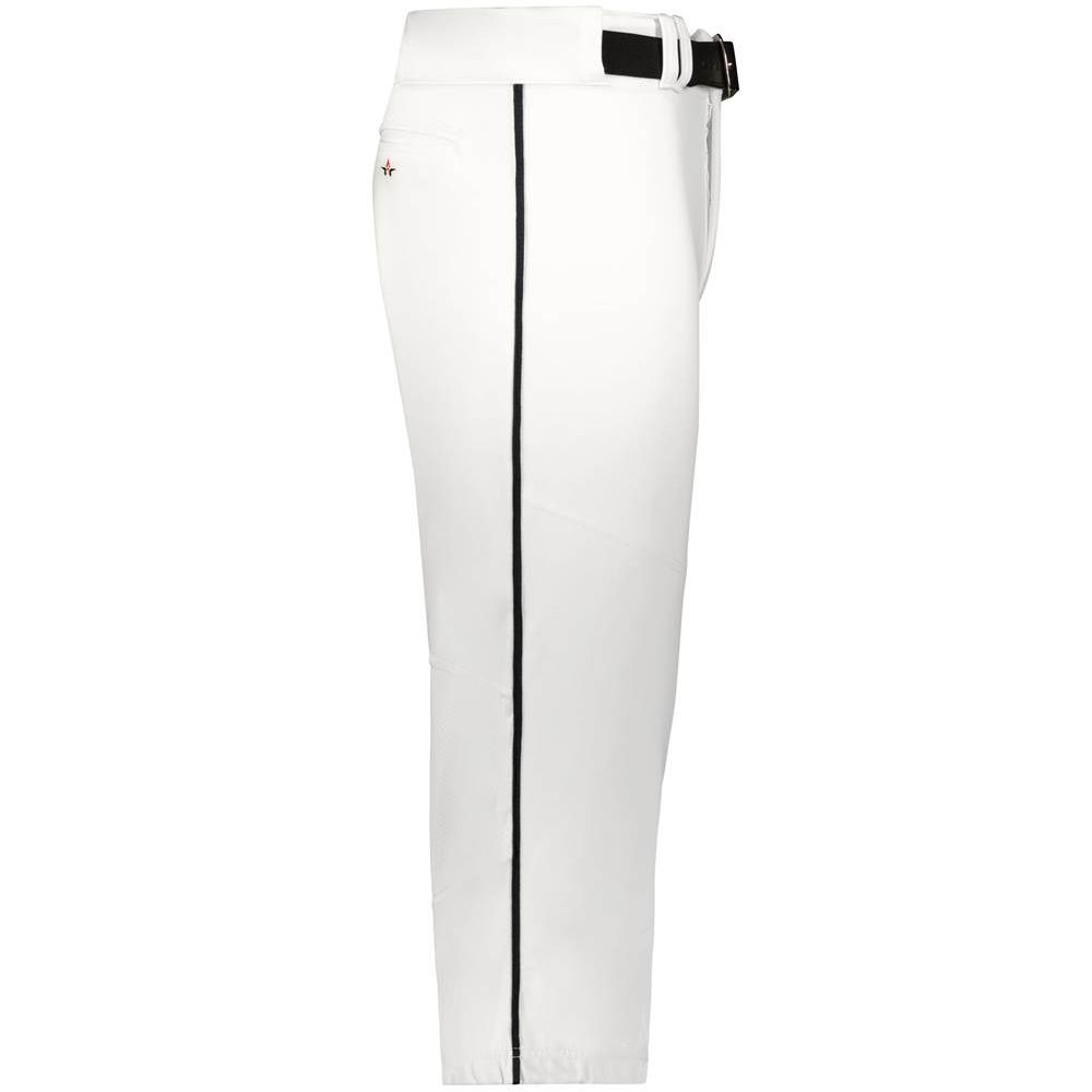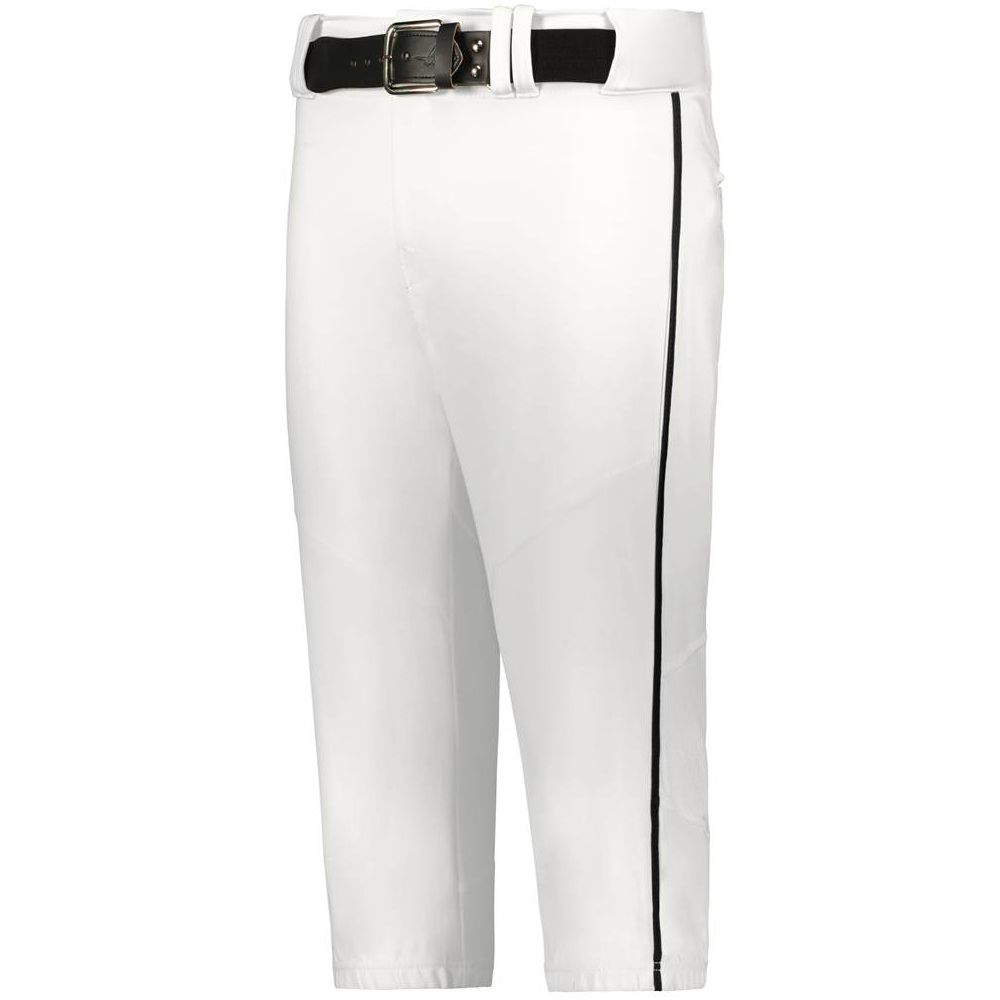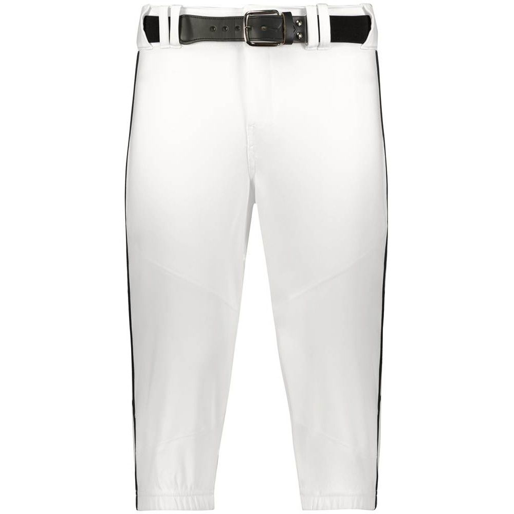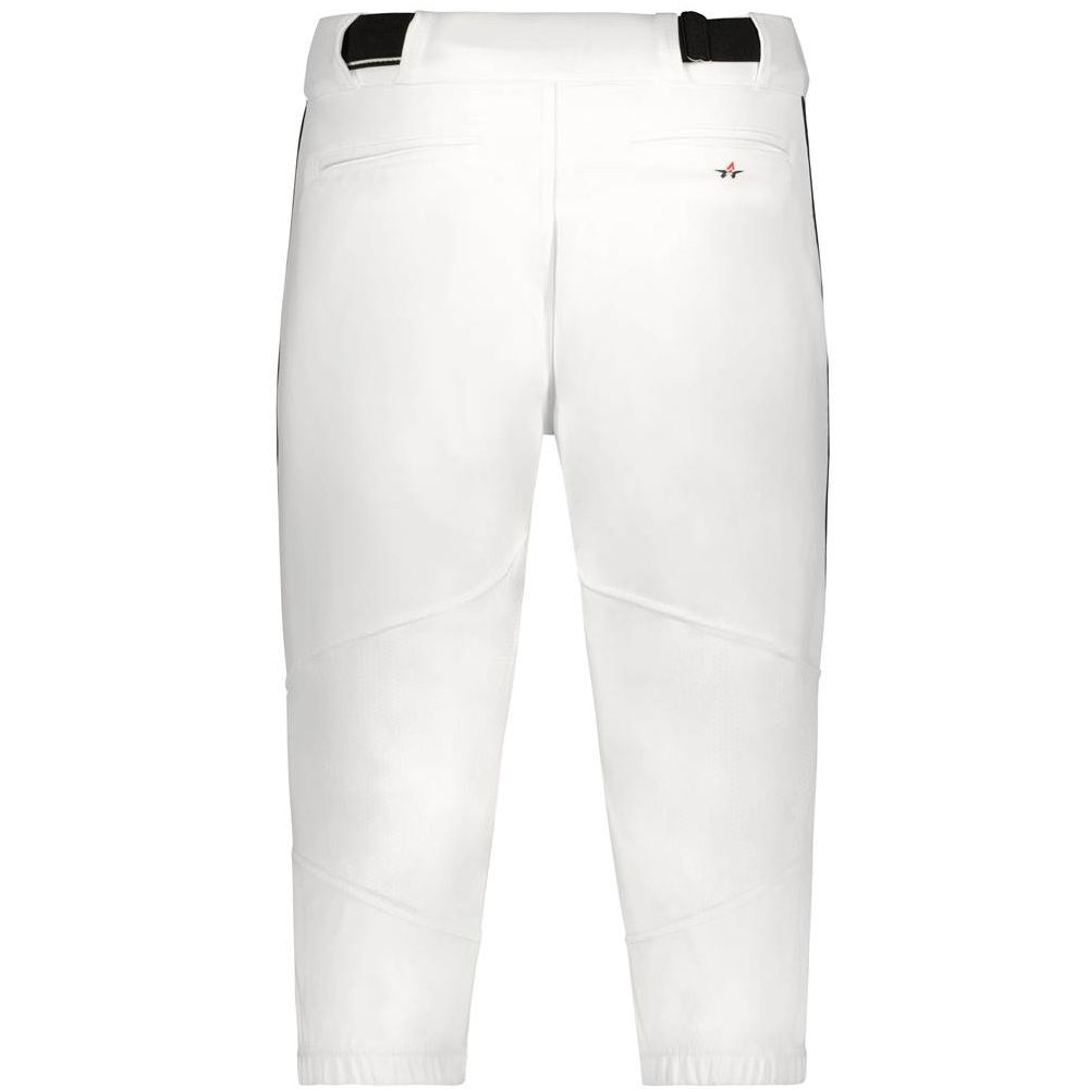 Alleson 655PKB piped baseball knicker pants are made of 14 oz. dura-stretch fabric with 3/16 inch piping on the side seams. Alleson 655PKBY baseball pants have a heavyweight 2-1/2 inch gripper waistband, 5 pro tunnel belt loops, double reinforced knees, vented back knees for comfort, dual snap closure with zipper, knee high design and two set-in welt back pockets. Available in youth to adult 3XL sizes.