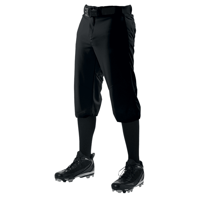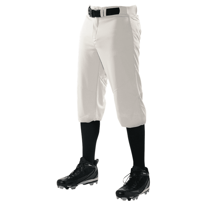 Alleson 655PKN baseball knicker pants are made of 14 oz. dura-stretch fabric in a solid color design. Alleson 655PKNY baseball pants have a heavyweight 2-1/2 inch gripper waistband, 5 pro tunnel belt loops, double reinforced knees, vented back knees for comfort, dual snap closure with zipper, knee high design and two set-in welt back pockets. Available in youth to adult 3XL sizes.