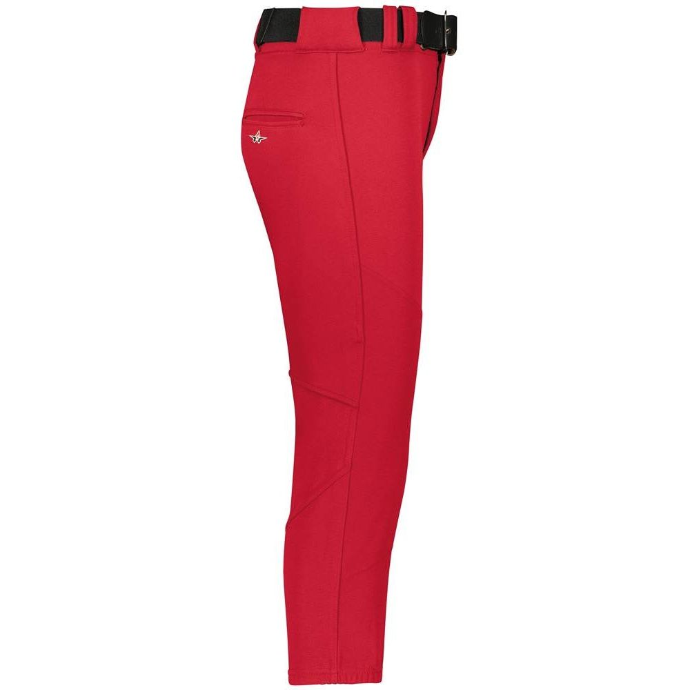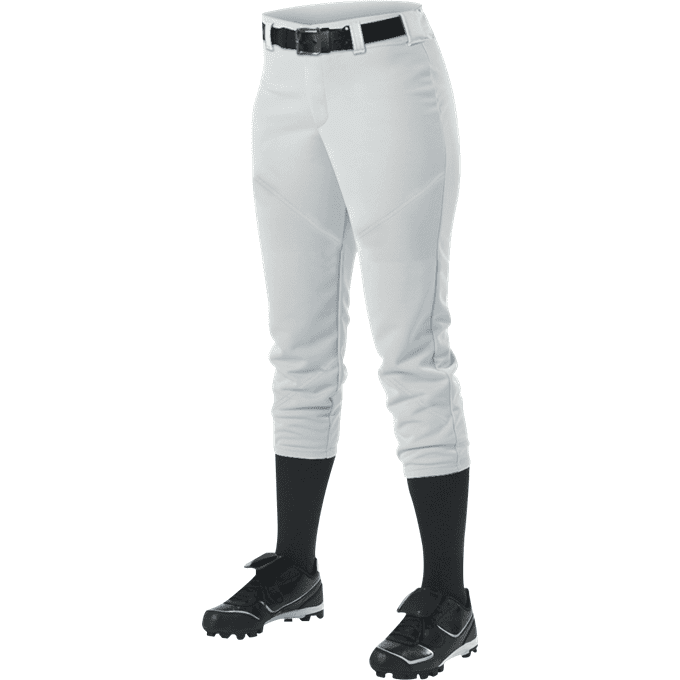 Alleson 655W Crush softball pants are made of 14oz. Dura-Stretch double knit fabric with a classic low rise belt loop design. Alleson fastpitch softball pants have a low rise solid color design, wide elastic gripper waistband, 5 pro style belt loops, reinforced knees, double snap with zipper fly with 2 snap closure.
