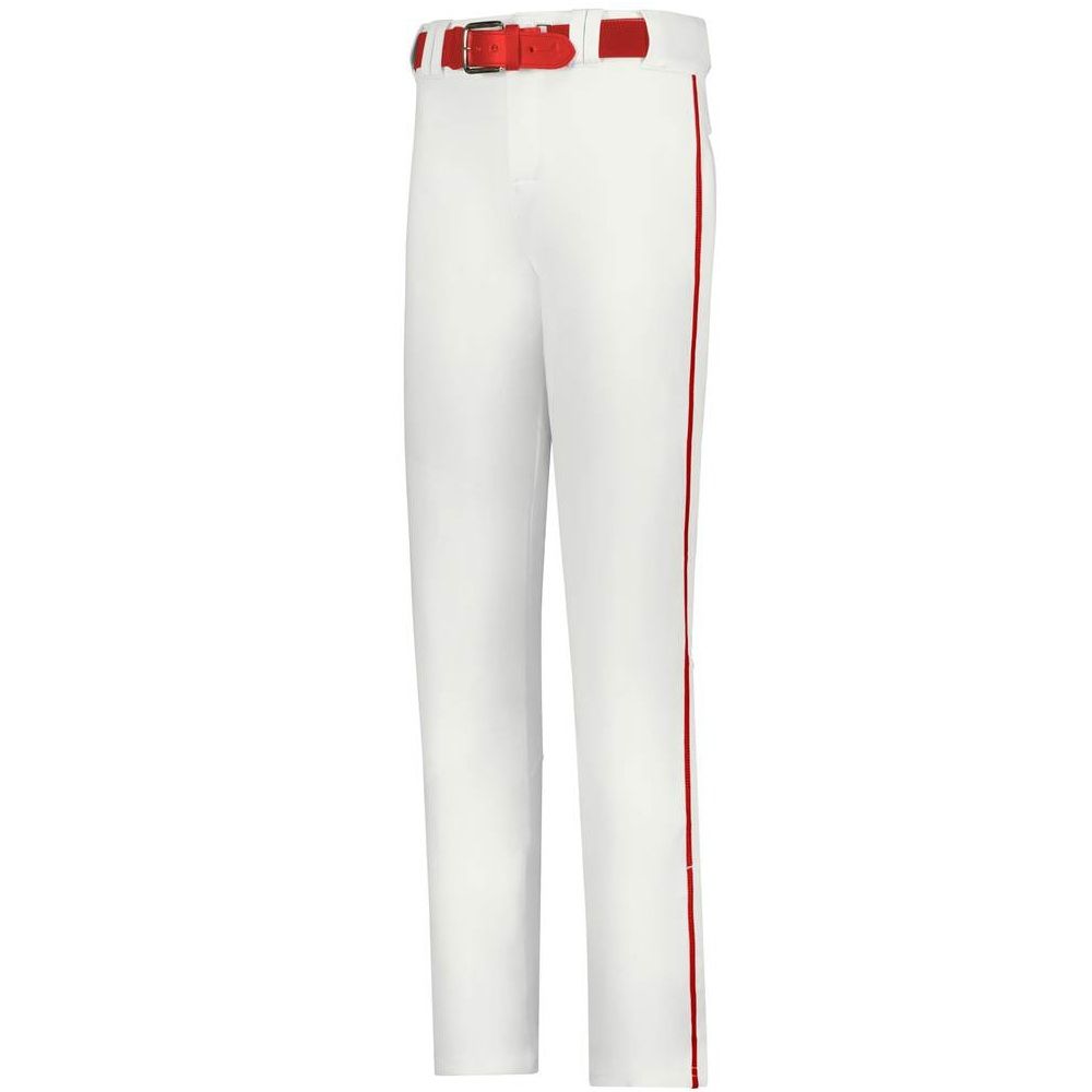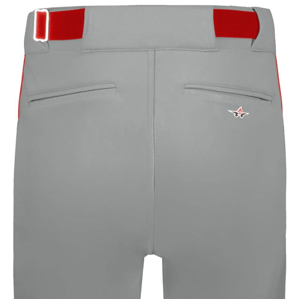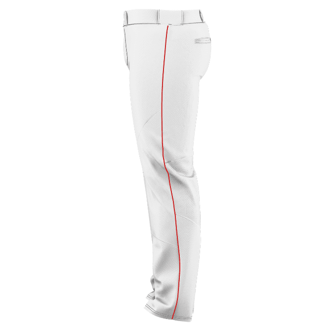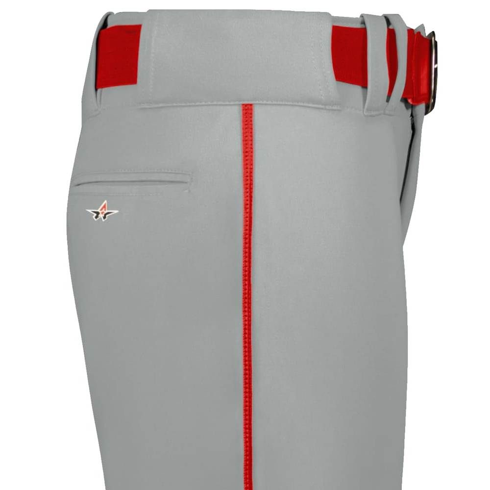 Alleson 655WLB adjustable inseam piped baseball pants are made of 14oz. dura-stretch fabric with 3/16 inch piping on the side seams. Alleson 655WLBY baseball pants have a heavyweight 2-1/2 inch gripper waistband, 5 pro tunnel belt loops, double reinforced knees, vented back knees for comfort, dual snap closure with zipper, two set-in welt back pockets and an adjustable inseam with Velcro adjustment. Available in youth to adult sizes.