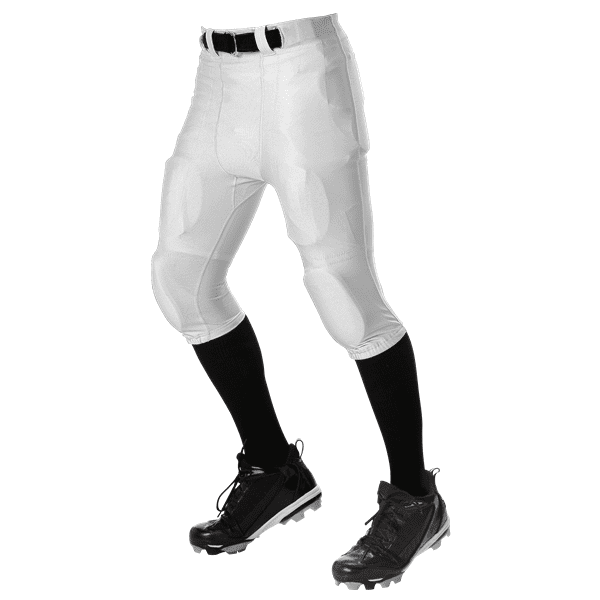 Alleson 675NF football pants feature 85% nylon / 15% spandex with 5 panel construction and no-fly crotch. Alleson 675NF football pants also have 100 denier tricot mesh thigh pockets, spandex knee pockets, heavyweight elastic waistband with dual rows of rubber grippers and a slotted elastic waist.
