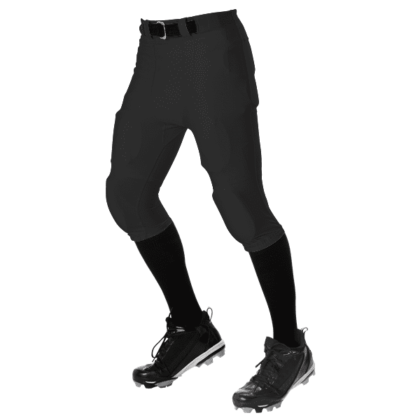 Alleson 675NF football pants feature 85% nylon / 15% spandex with 5 panel construction and no-fly crotch. Alleson 675NF football pants also have 100 denier tricot mesh thigh pockets, spandex knee pockets, heavyweight elastic waistband with dual rows of rubber grippers and a slotted elastic waist.