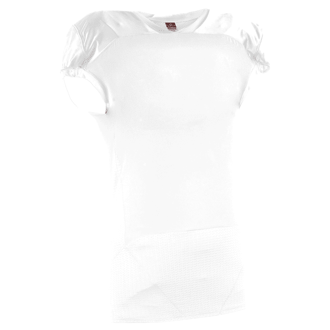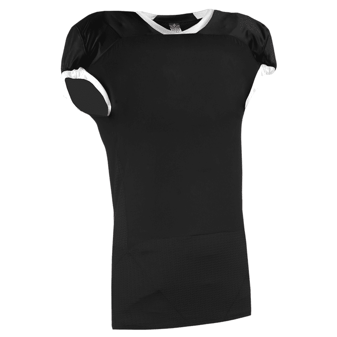 Alleson 775 football jersey features lightweight high abrasion AR-TECH front and back fabric with double layer stretch dazzle inserts. Alleson 775 jersey also features a contrast color collar, sleeve stripes, and a full length body cut.