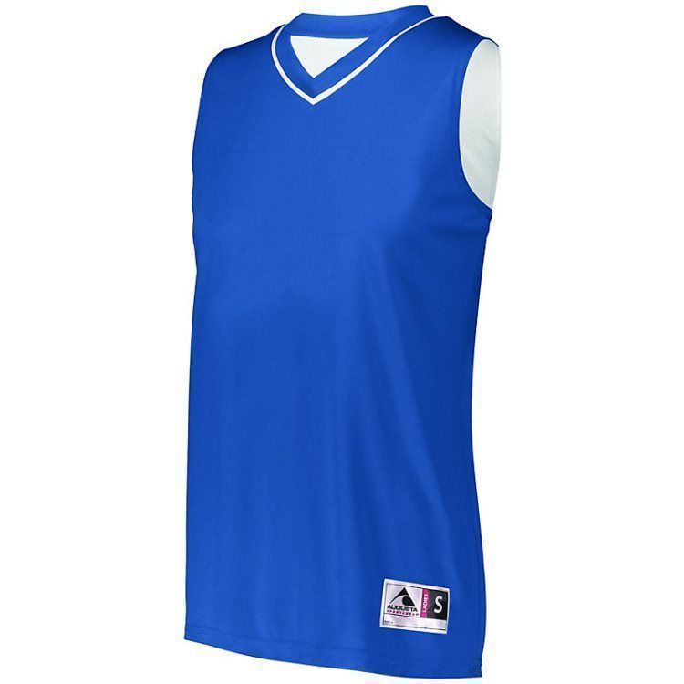 Augusta 154 Reversible Womens Basketball Jersey features polyester wicking knit fabric with contrast color inserts. Augusta 154 womens jerseys also feature self v-neck collar, contrast color neck accents, separately finished bottom hemmed layers and an outside locker label.