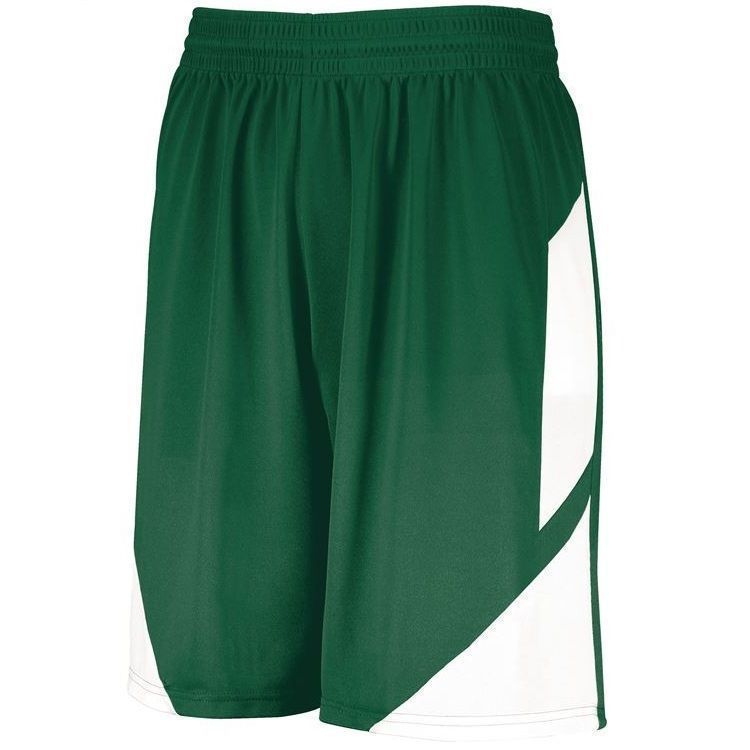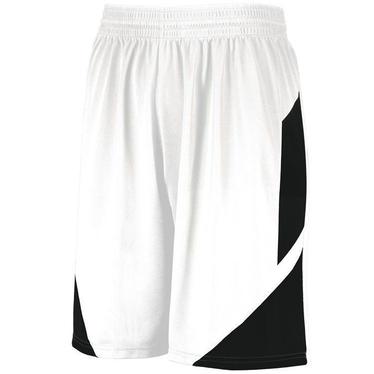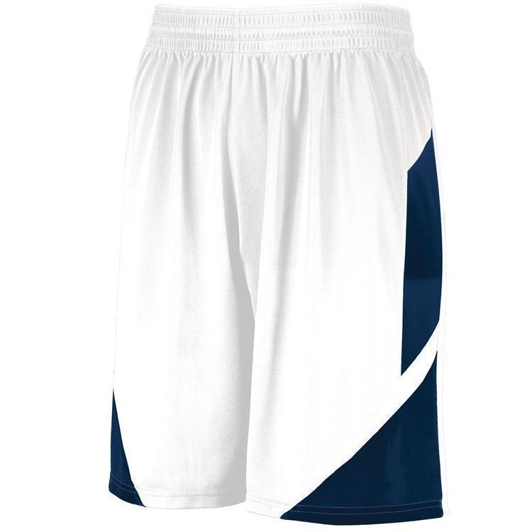 Augusta 1733 Step Back Basketball Shorts feature polyester wicking knit fabric with an 8 inch inseam. Augusta 1733 shorts also feature contrast color side accents, a covered elastic waistband with drawstring and tag free label. NFHS compliant.