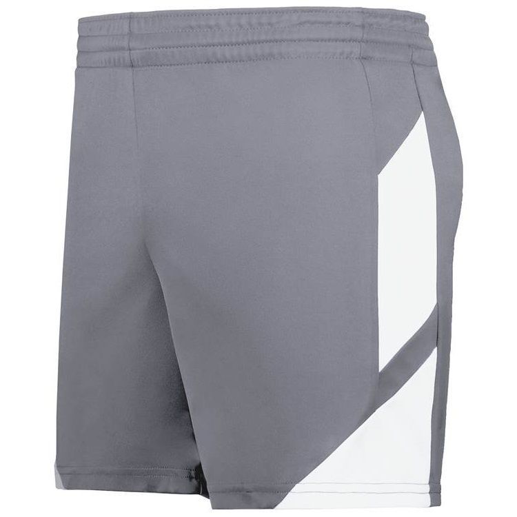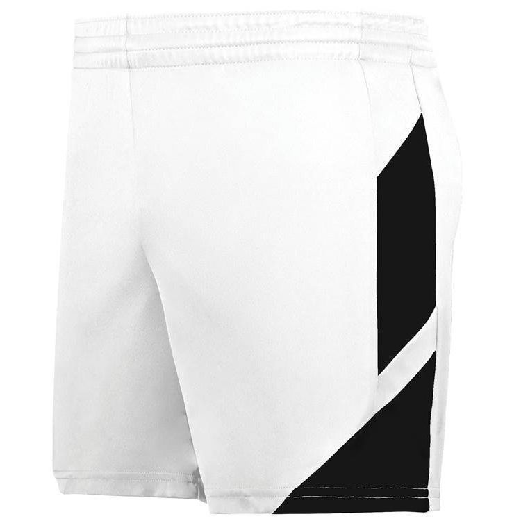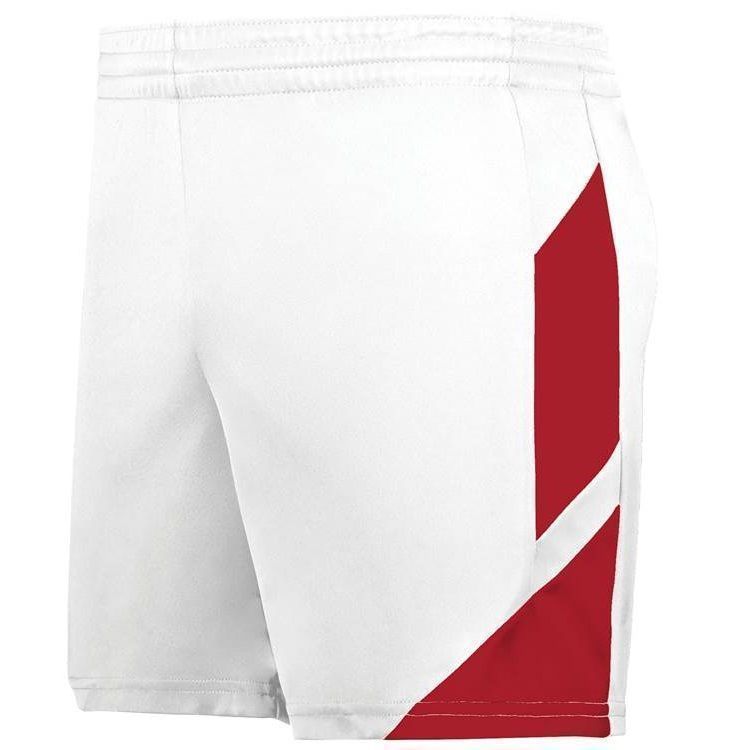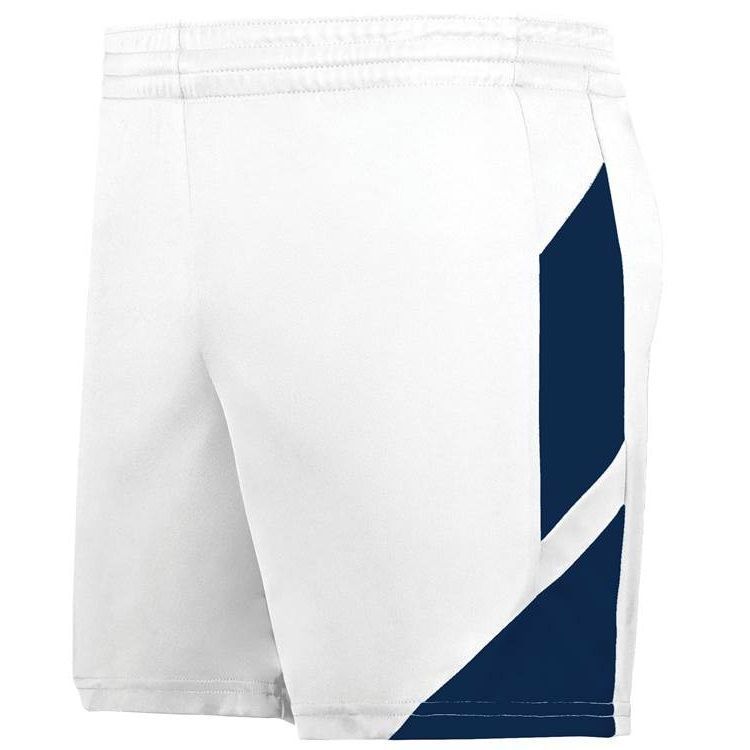 Augusta 1738 Womens Step Back II Basketball Shorts feature polyester wicking knit fabric with modern fit and 5 inch inseam. Augusta 1738 ladies shorts also feature contrast color side accents, a covered elastic waistband with drawstring and tag free label.