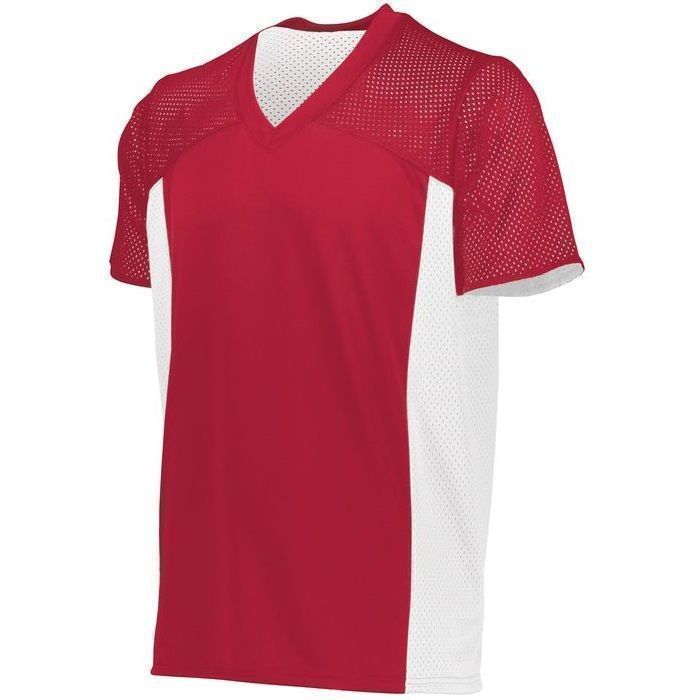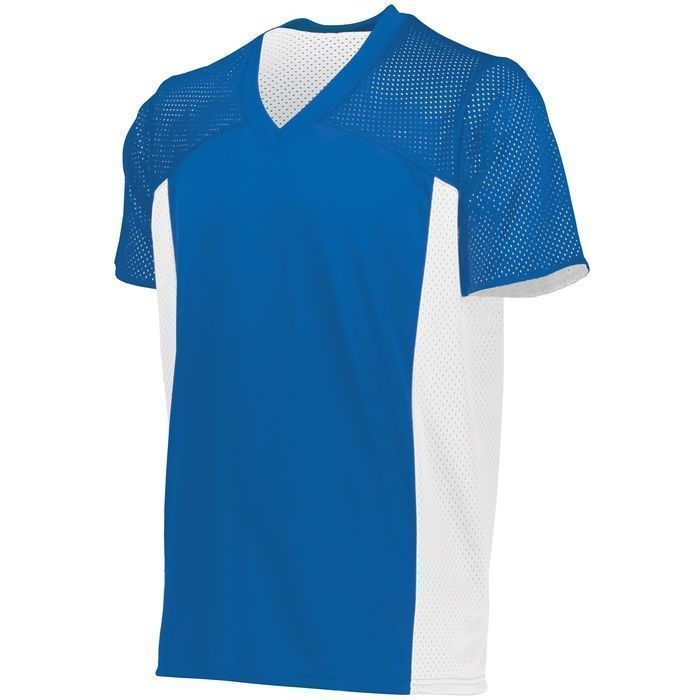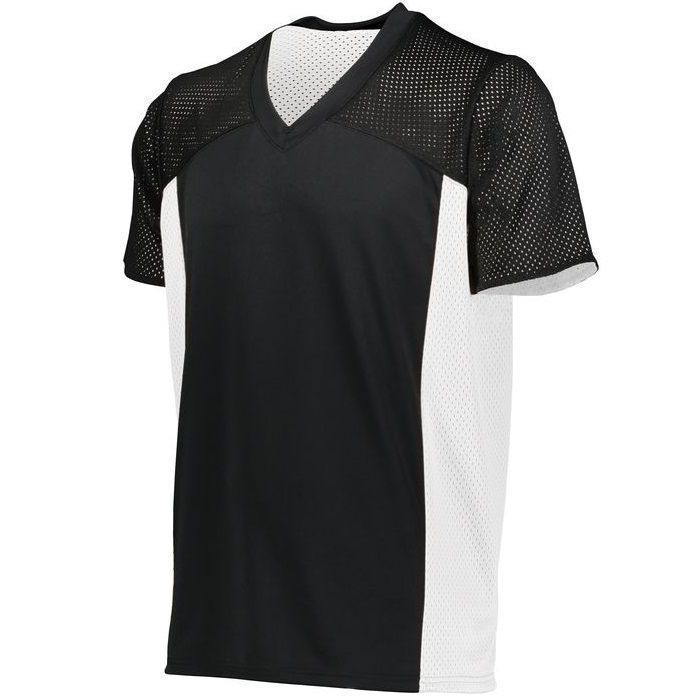 Augusta 264 Reversible Flag Football jersey features 100% polyester smooth knit body with sport mesh fabric on shoulders, sleeves and sides. Augusta 364 reversible flag football jersey also features a contrast color reverse design, v-neck collar, set-in sleeves, single layered yoke and double needle armholes / bottom hem. This jersey is designed to be worn without shoulder pads.