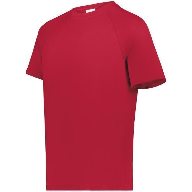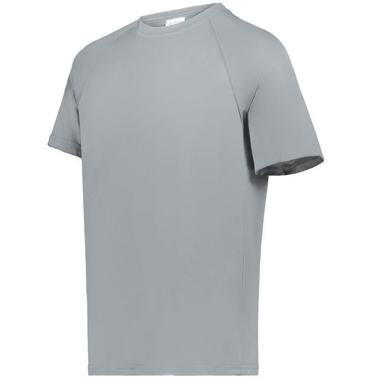 Augusta Attain Wicking SS T Shirt features 100% polyester moisture wicking fabric with color secure technology that prevents dye migration. Augusta 2790 shirt also features raglan sleeves, double needle hemmed sleeves / bottom and a crew neck design. Also features tagless heat seal size label and youth 2XS to adult 6XL sizes.