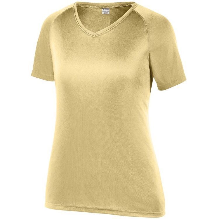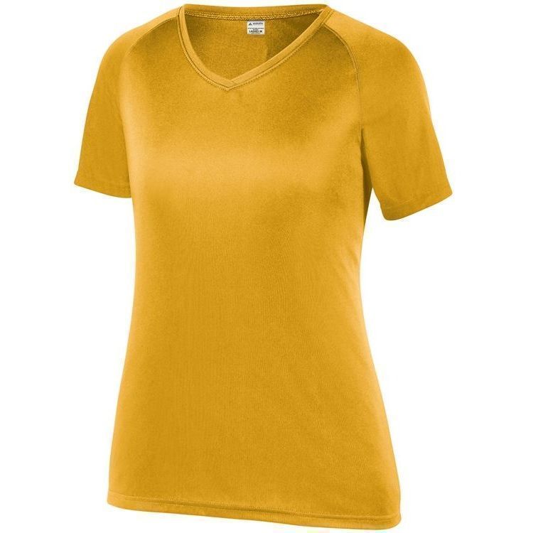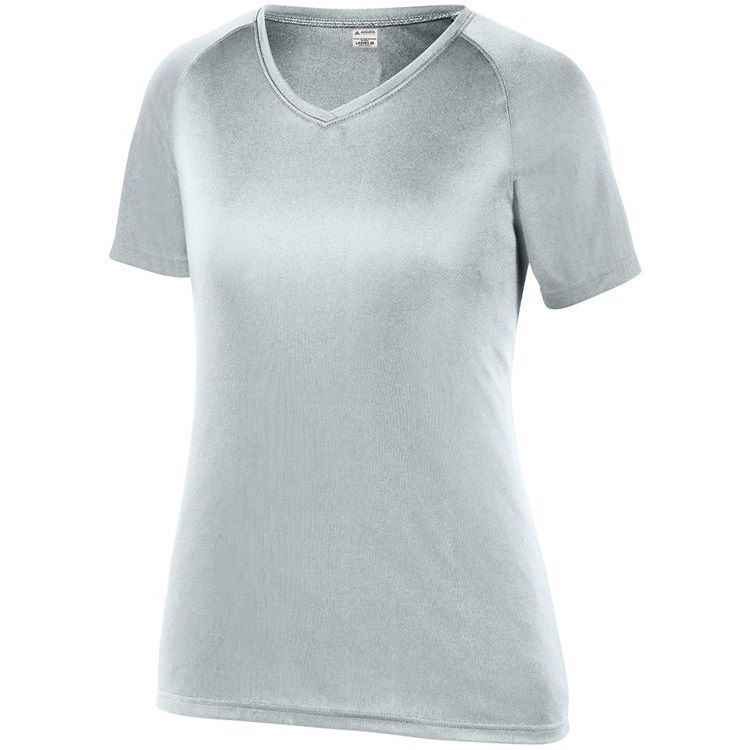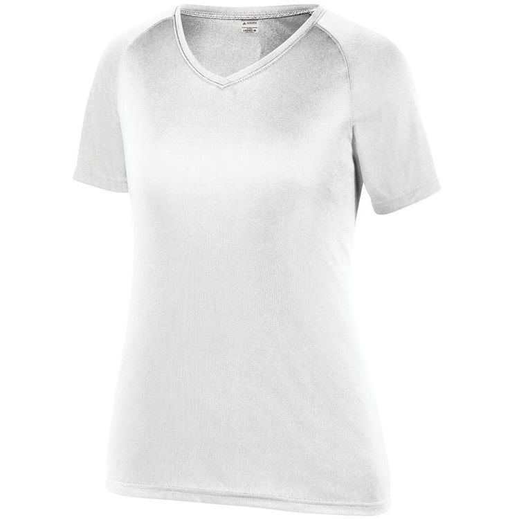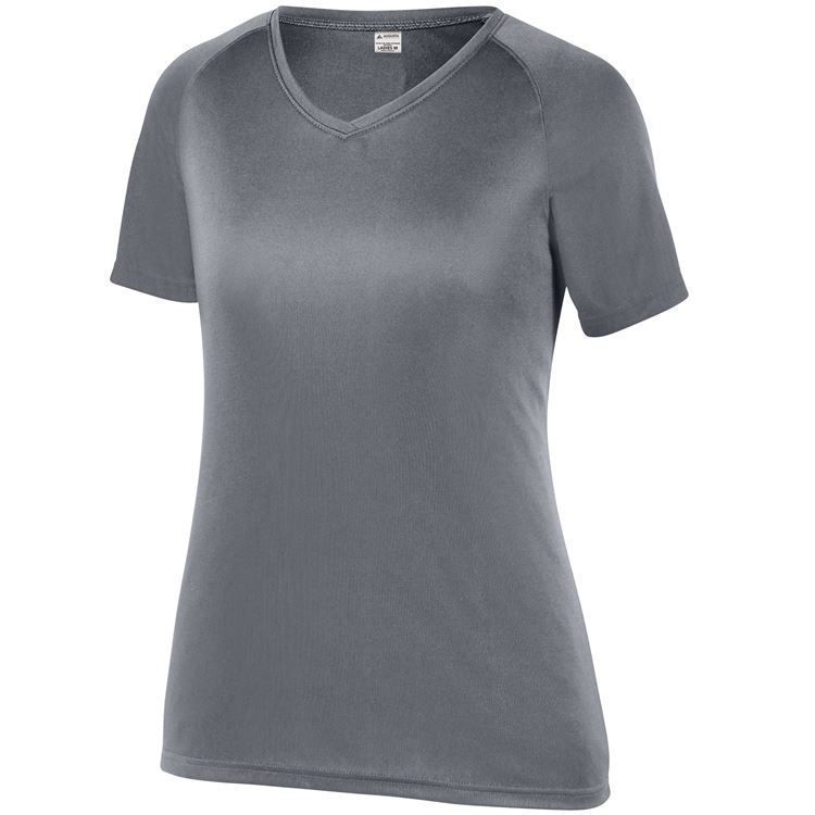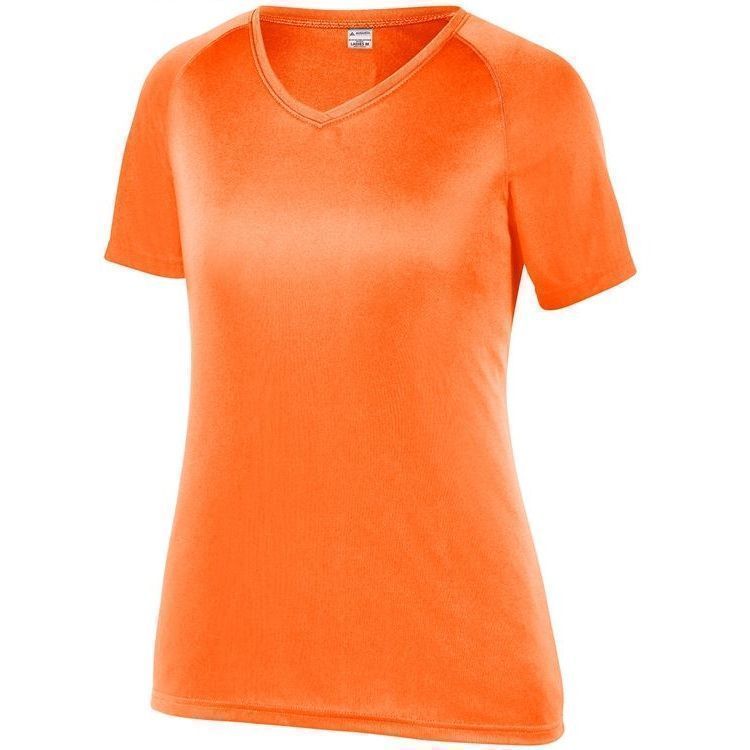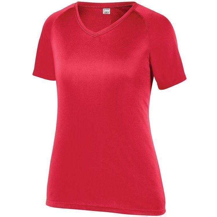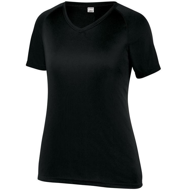 Augusta Attain Wicking V-Neck T Shirt features 100% polyester moisture wicking fabric with color secure technology. Augusta 2792 2793 shirt also features raglan sleeves, double needle hemmed sleeves / bottom and a v-neck design. Also features tagless heat seal size label.