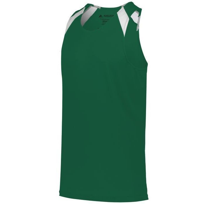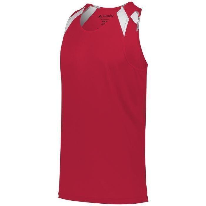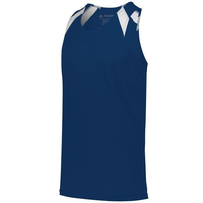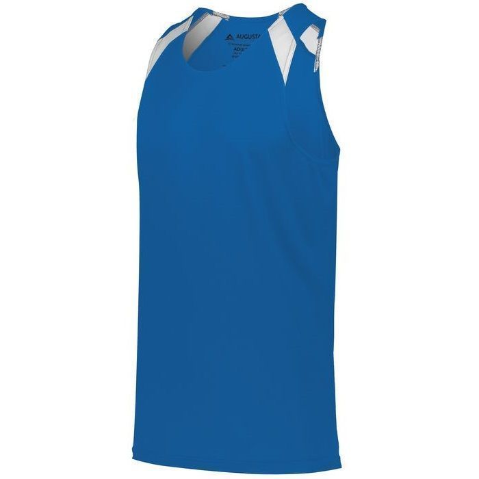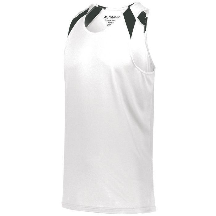 100% polyester wicking knit fabric that pulls moisture away from the skin. Augusta 343 track tank also features contrasting color top inserts, self binding neck & armholes, heat seal neck and two needle stitching at hems.
