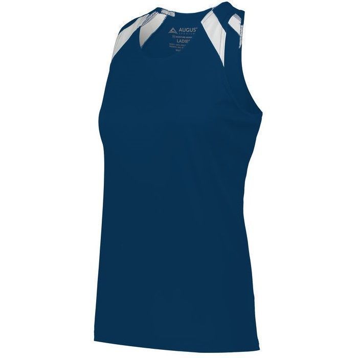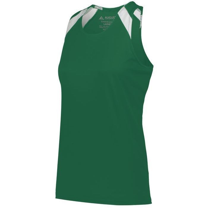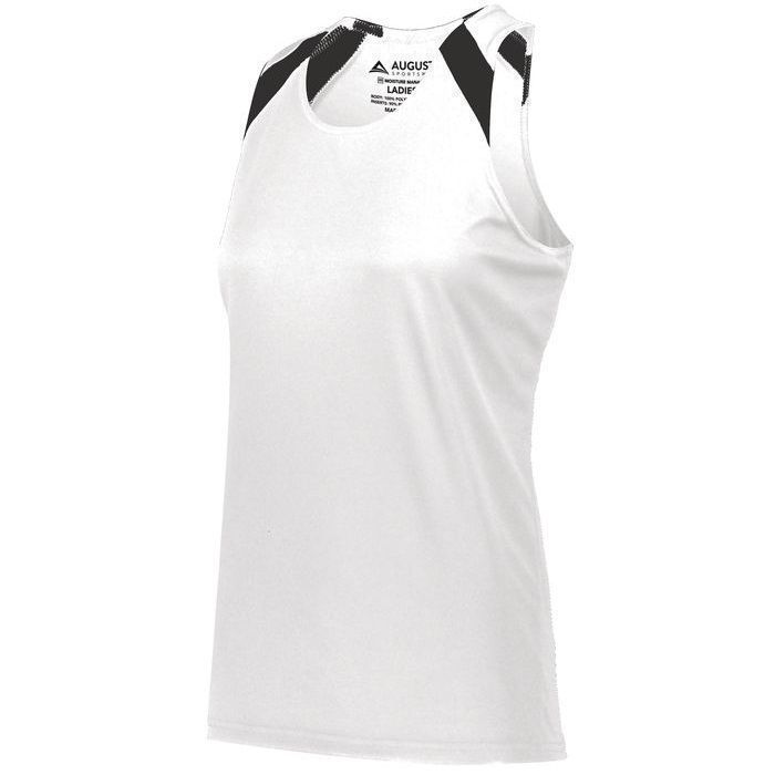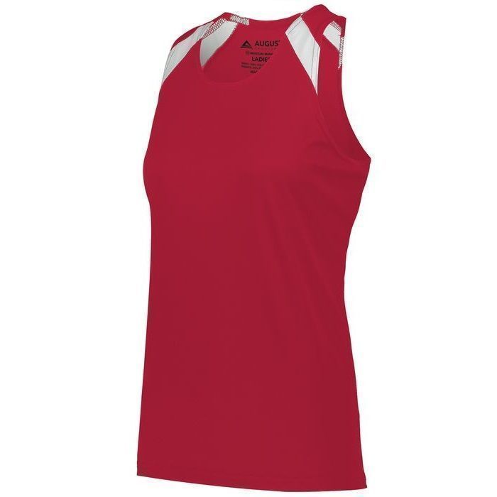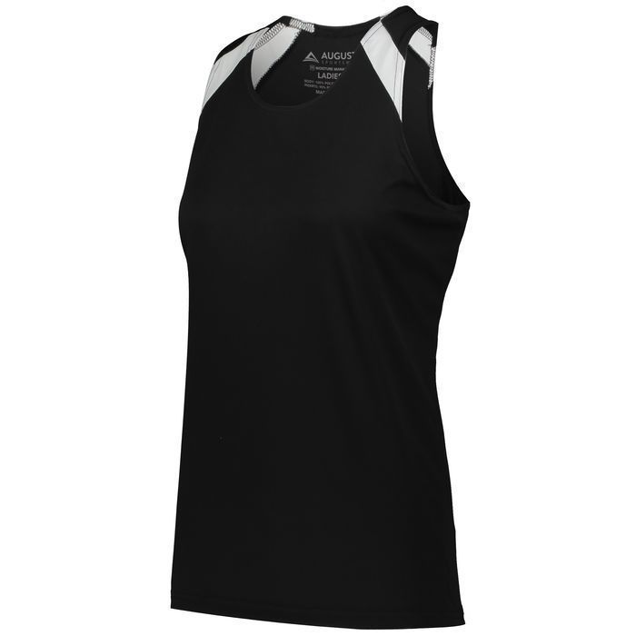 100% polyester wicking knit fabric that pulls moisture away from the skin. Augusta 348 ladies track tank also features contrasting color top inserts, self binding neck & armholes, heat seal neck and two needle stitching at hems.