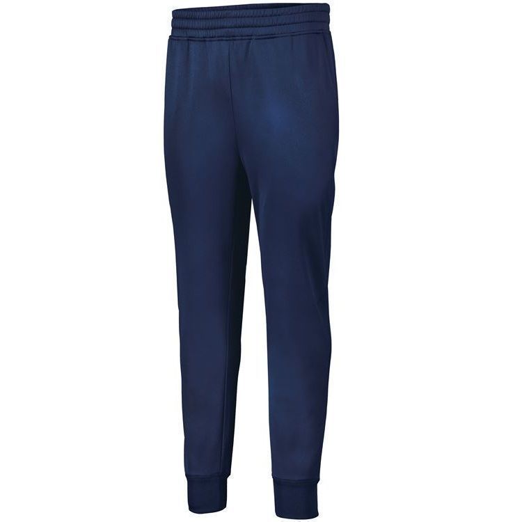 a 100% polyester moisture wicking performance fleece, covered elastic waistband with drawstring, pull on design, side seam pockets, tapered legs and double stitched rib-knit bottoms.