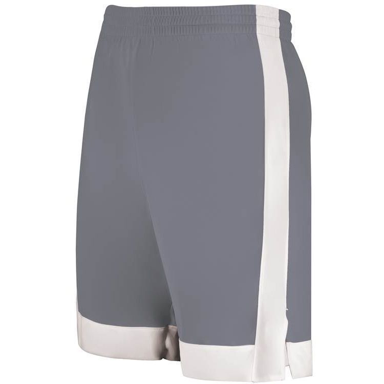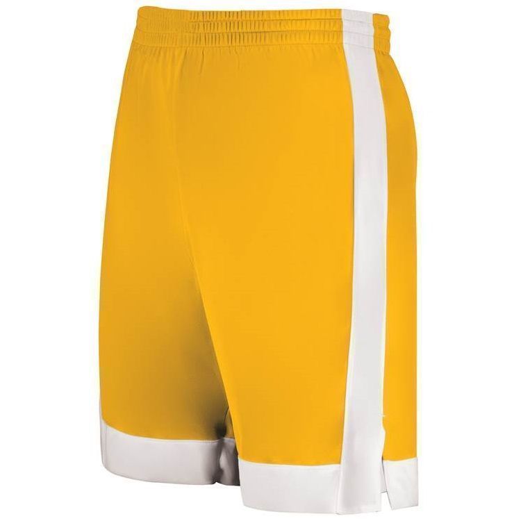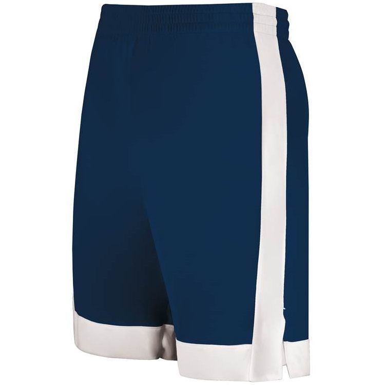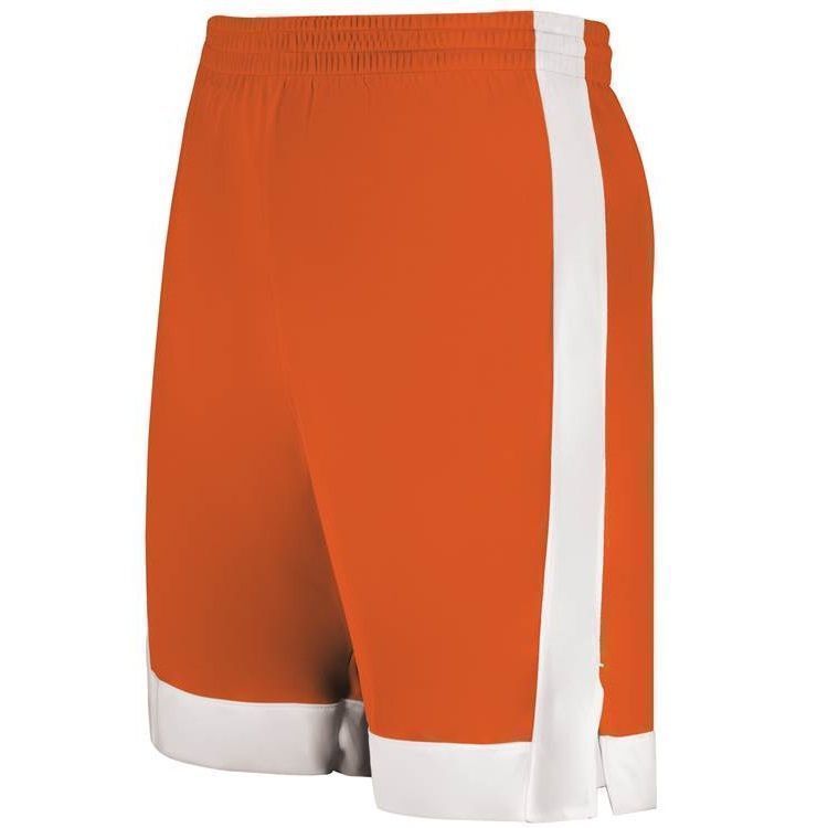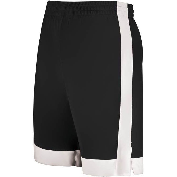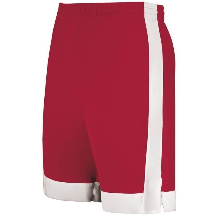 Augusta 6889 Match Up Basketball Shorts features 100% polyester wicking fabric, contrast side and bottom stripe, a covered elastic waistband with inside drawstring, side vents, and a 6.5 inch inseam. NFHS compliant.