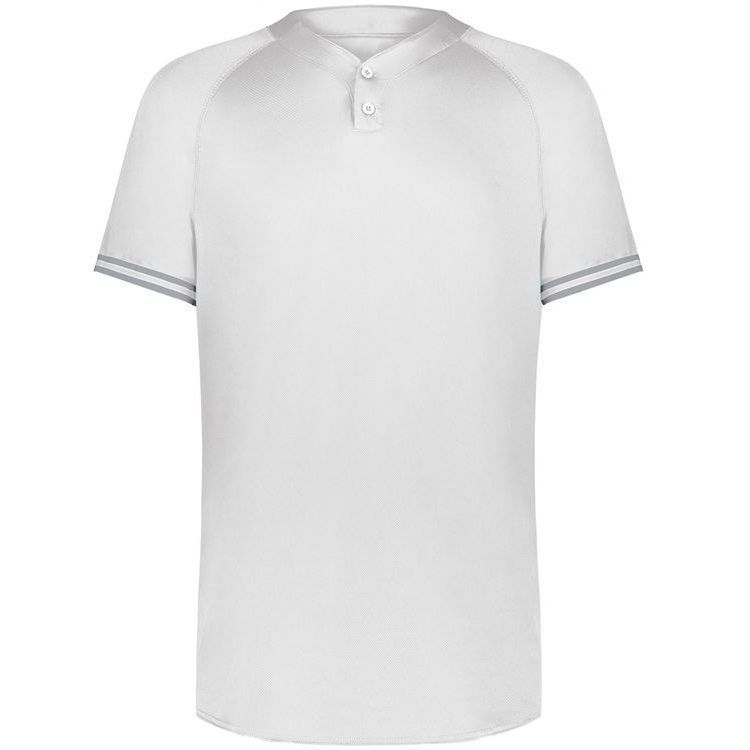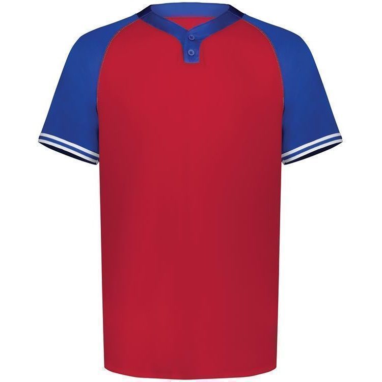 Augusta 6905 Cutter 2 button baseball jersey with poly spandex fabric with 4-way stretch. Augusta 6905 6906 baseball jersey has a two button front, 50+ UPF sun protection, contrast color raglan sleeves / neck trim and double stitched curved bottom hem. Youth through adult 3XL sizes.