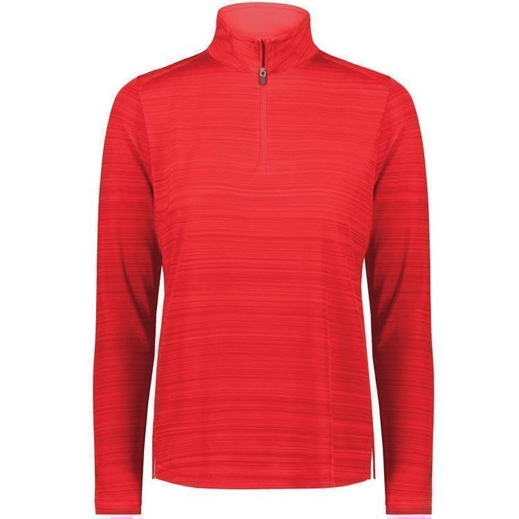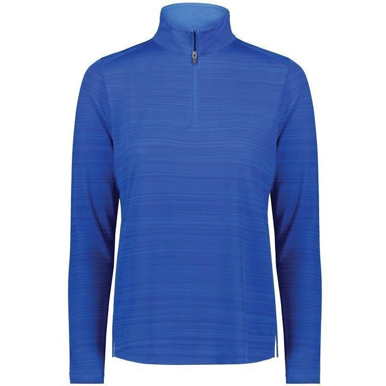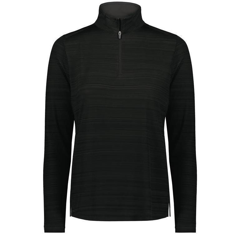 Augusta 7012 Womens Pursuit 1/4 Zip Pullover Shirt features 100% polyester interlock textured knit fabric with tonal stripe design. Augusta ladies 1/4 zip long sleeve shirt has a self fabric collar, zip front, side vents and set-in long sleeves with rolled forward shoulder seam. Tagless heat-seal label.