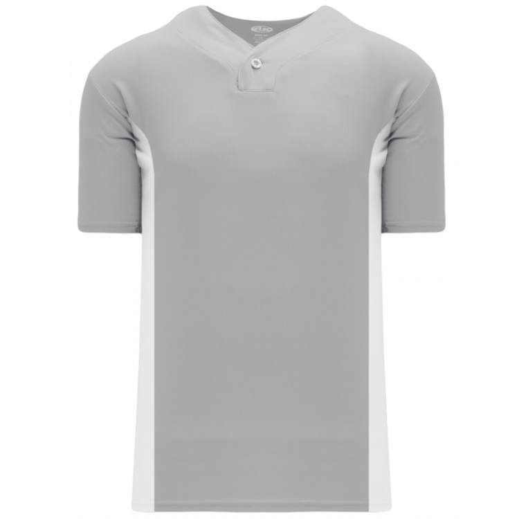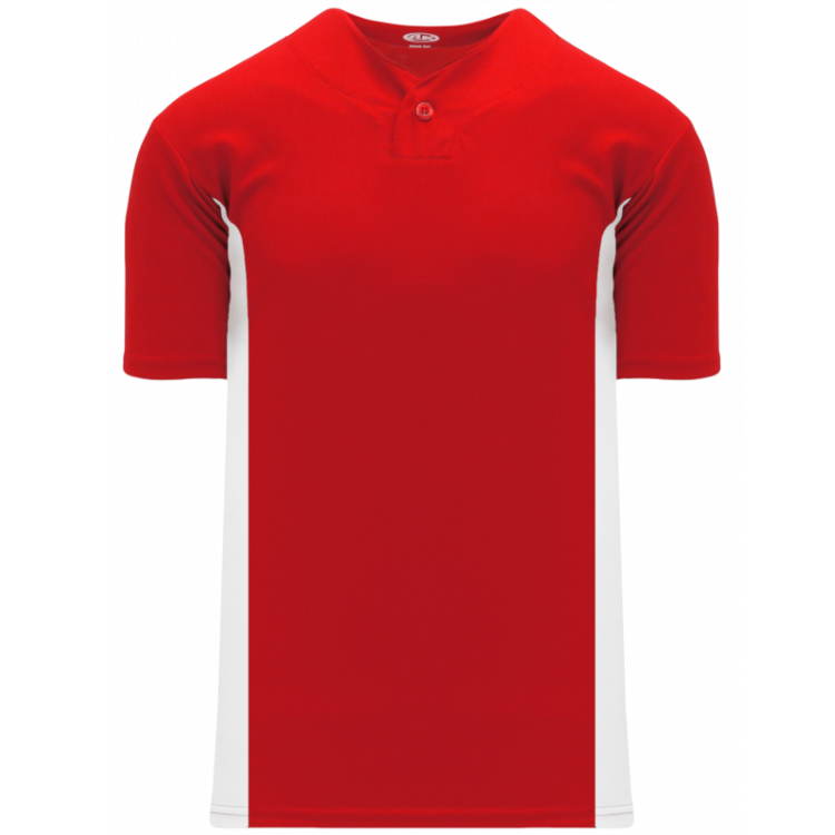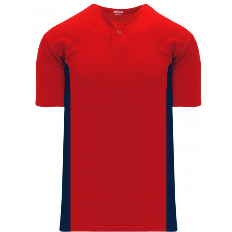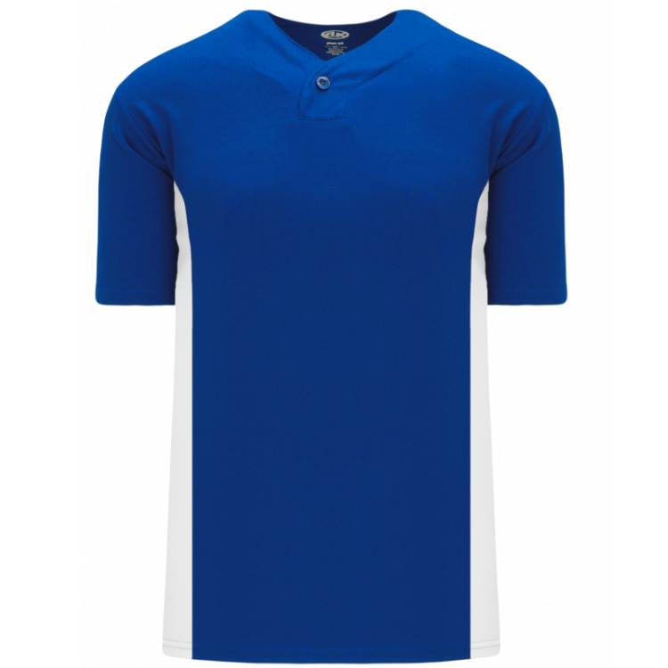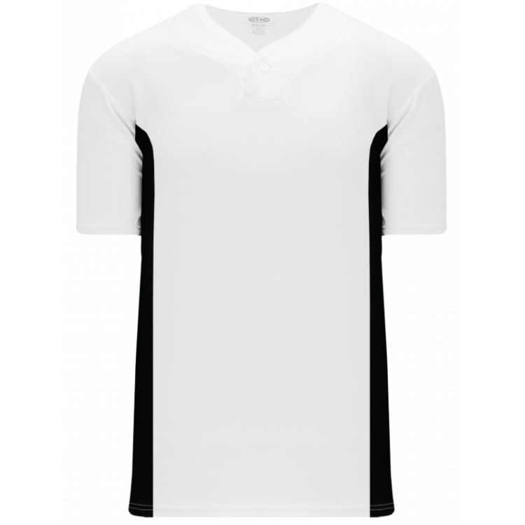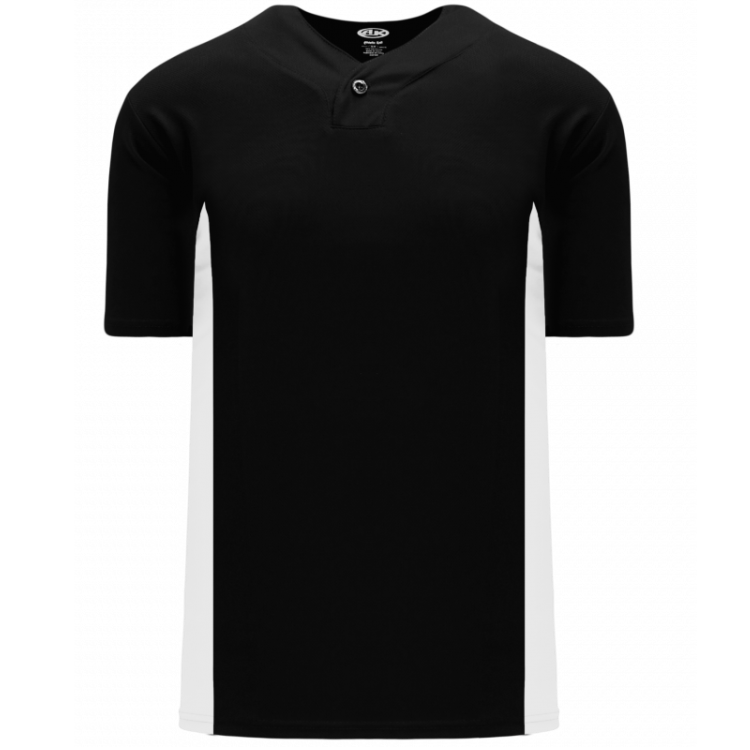 made of mid-weight Dry-Flex wicking fabric. Athletic Knit BA1343 baseball jersey has a one button placket, contrast color side stripes, an athletic cut and double needle hem bottom.