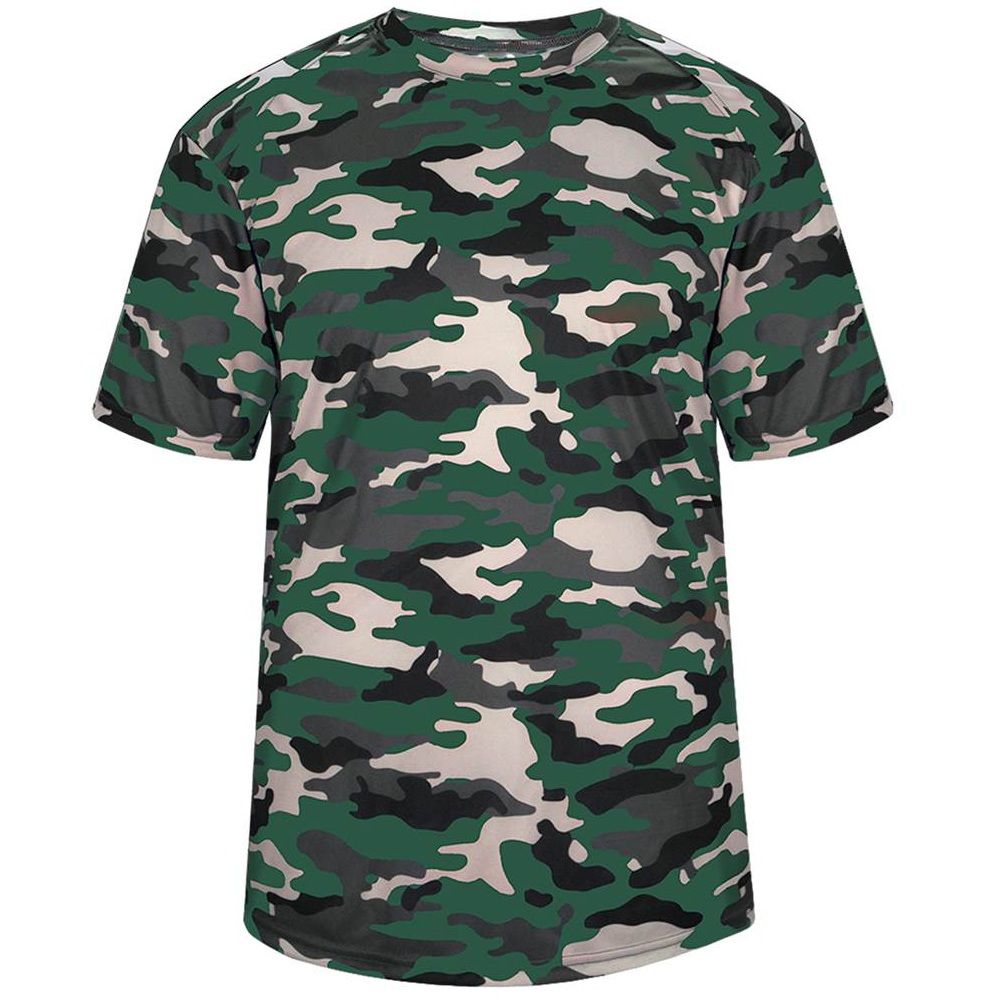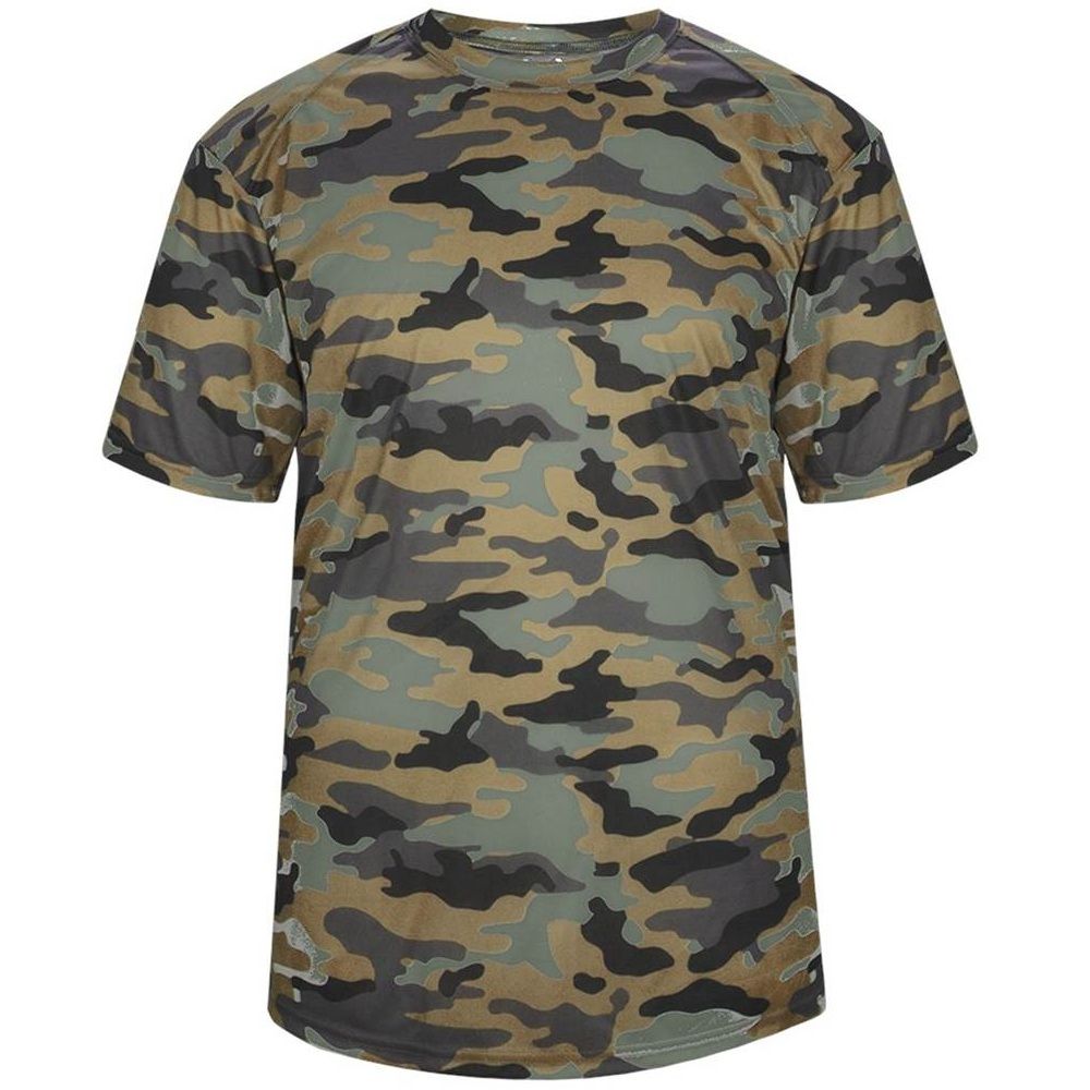 Badger B-Dry SS Camo Shooting Shirt features a 100% polyester antimicrobial / moisture wicking fabric. Badger 4181 2181 wicking shooter has a self fabric collar, full standard camo print and double needle bottom hem. Tagless heat-seal label.