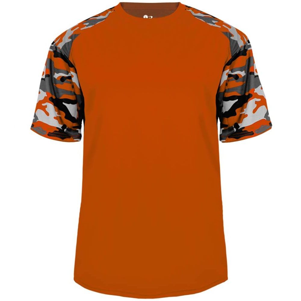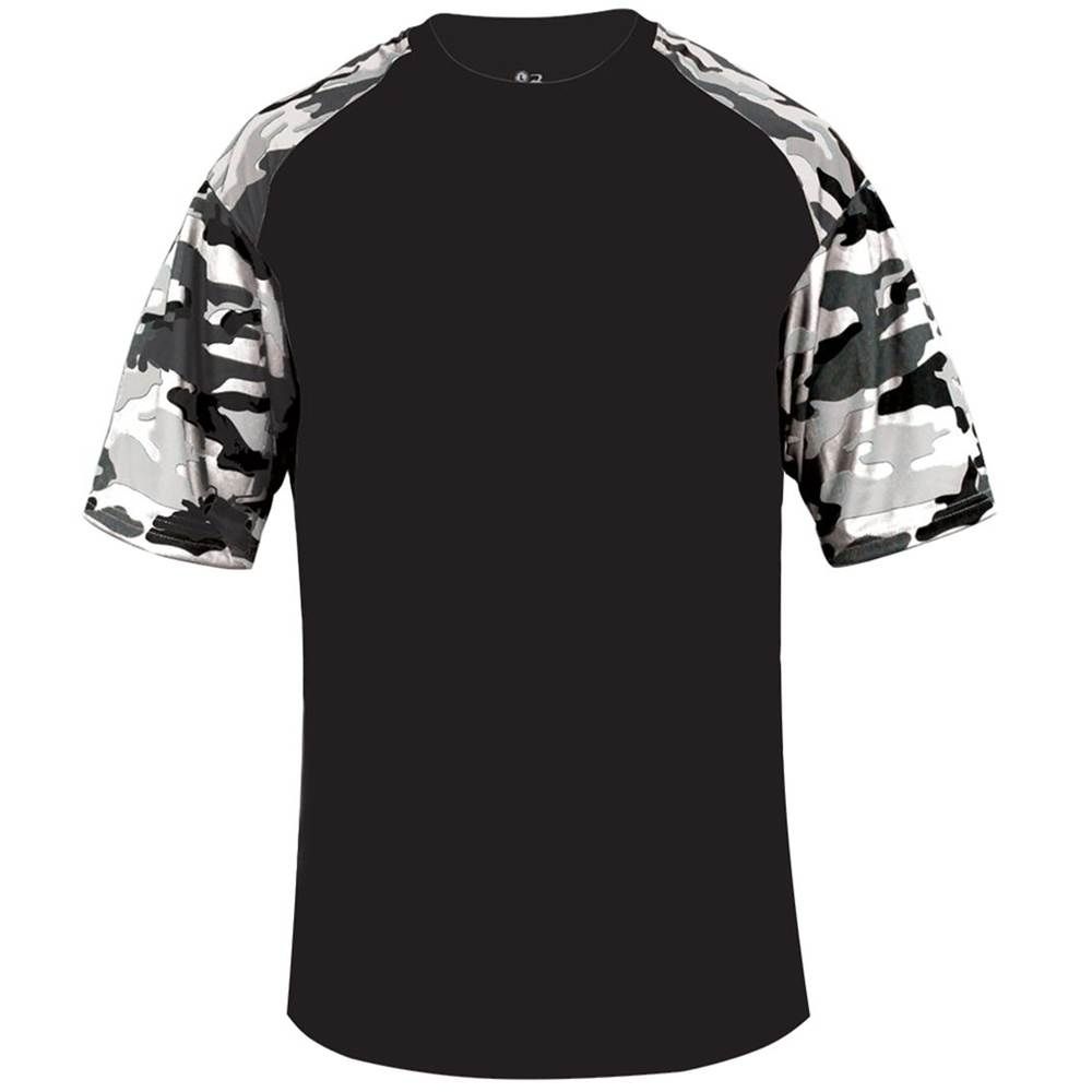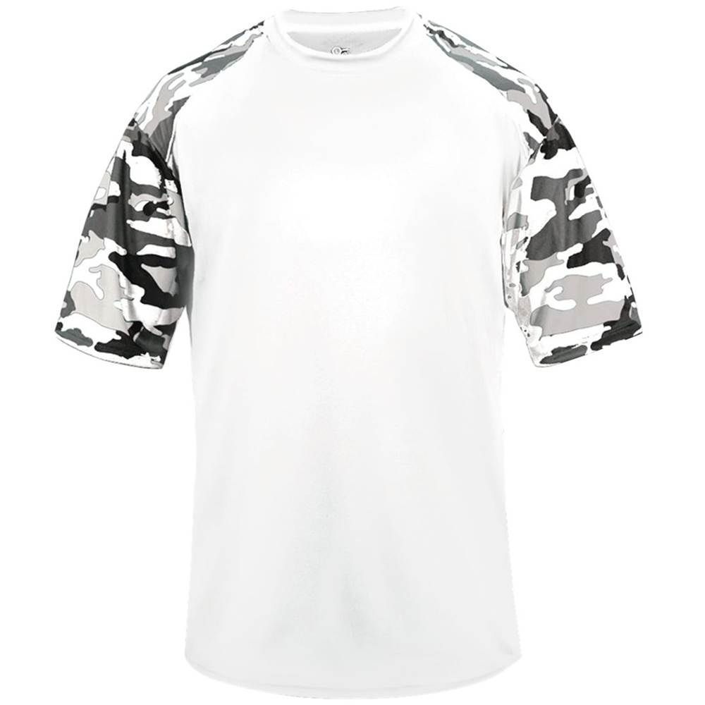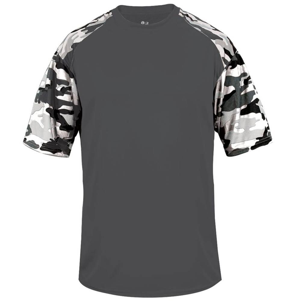 features a 100% polyester antimicrobial / moisture wicking fabric that pulls sweat away from the skin for easy evaporation. Badger 4141 2141 wicking camo tee has a self fabric collar and double needle bottom hem. Tagless heat-seal label.