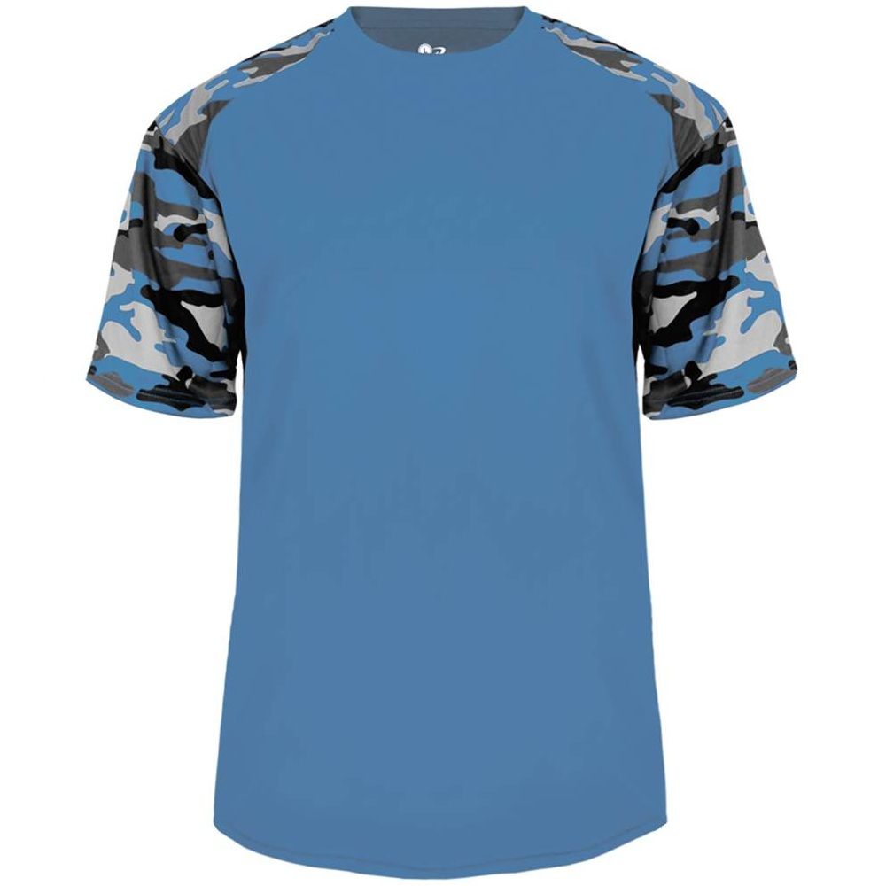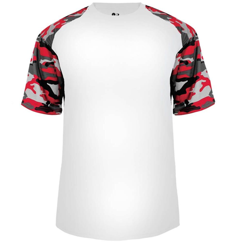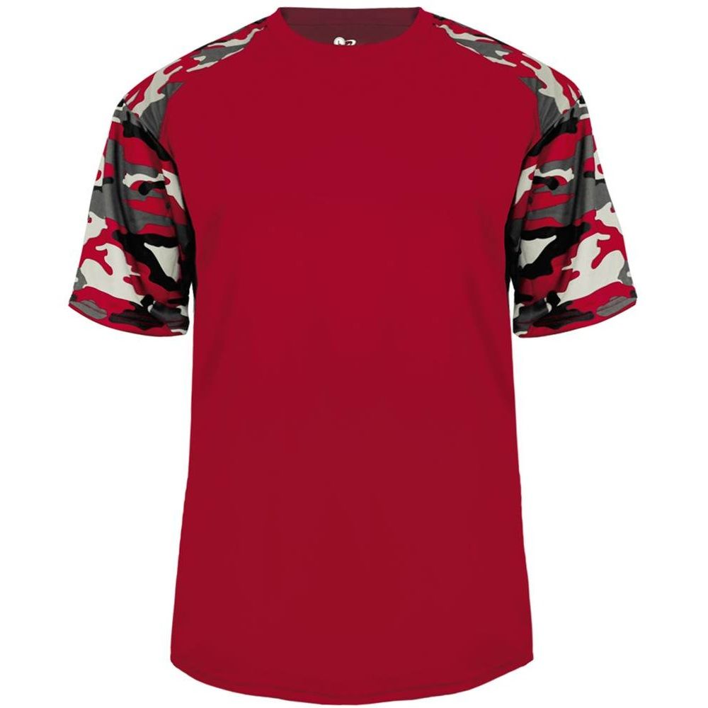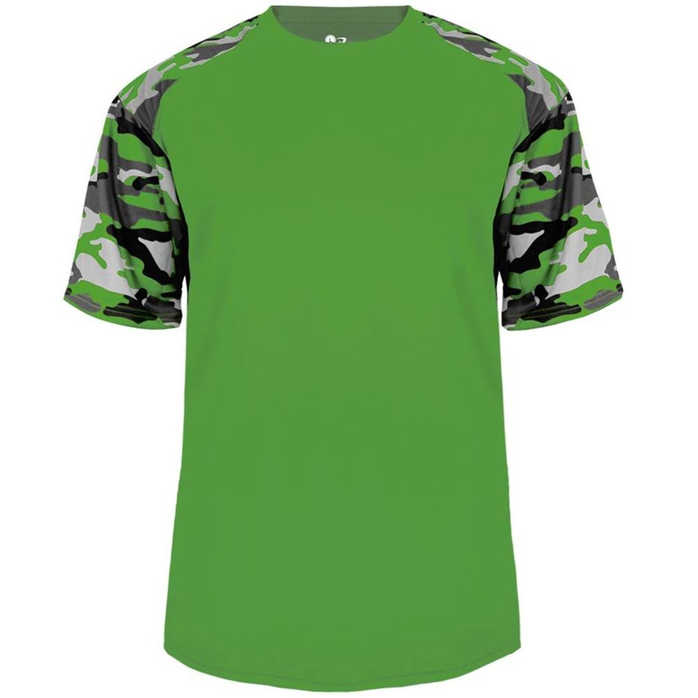 features a 100% polyester antimicrobial / moisture wicking fabric that pulls sweat away from the skin for easy evaporation. Badger 4141 2141 wicking camo tee has a self fabric collar and double needle bottom hem. Tagless heat-seal label.