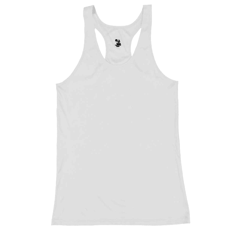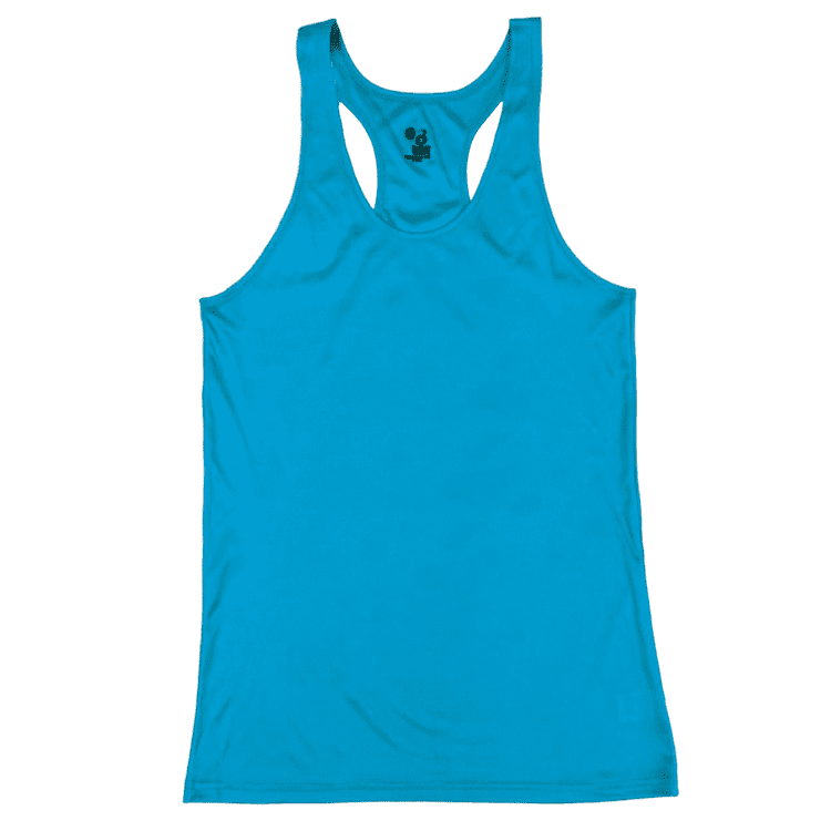 Badger B-Core Moisture Wicking Womens Racerbackk Jersey Tee features a 100% polyester antimicrobial / moisture wicking fabric that pulls sweat away from the skin for easy evaporation. Badger 4166 sleeveless wicking racerback has a womens specific fit, self fabric collar and double needle bottom hem. Tagless heat-seal label.