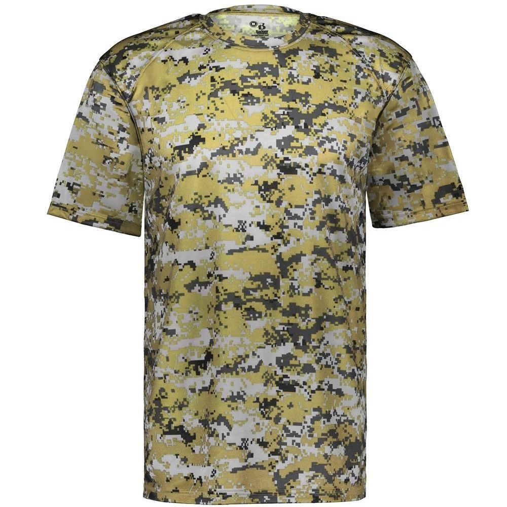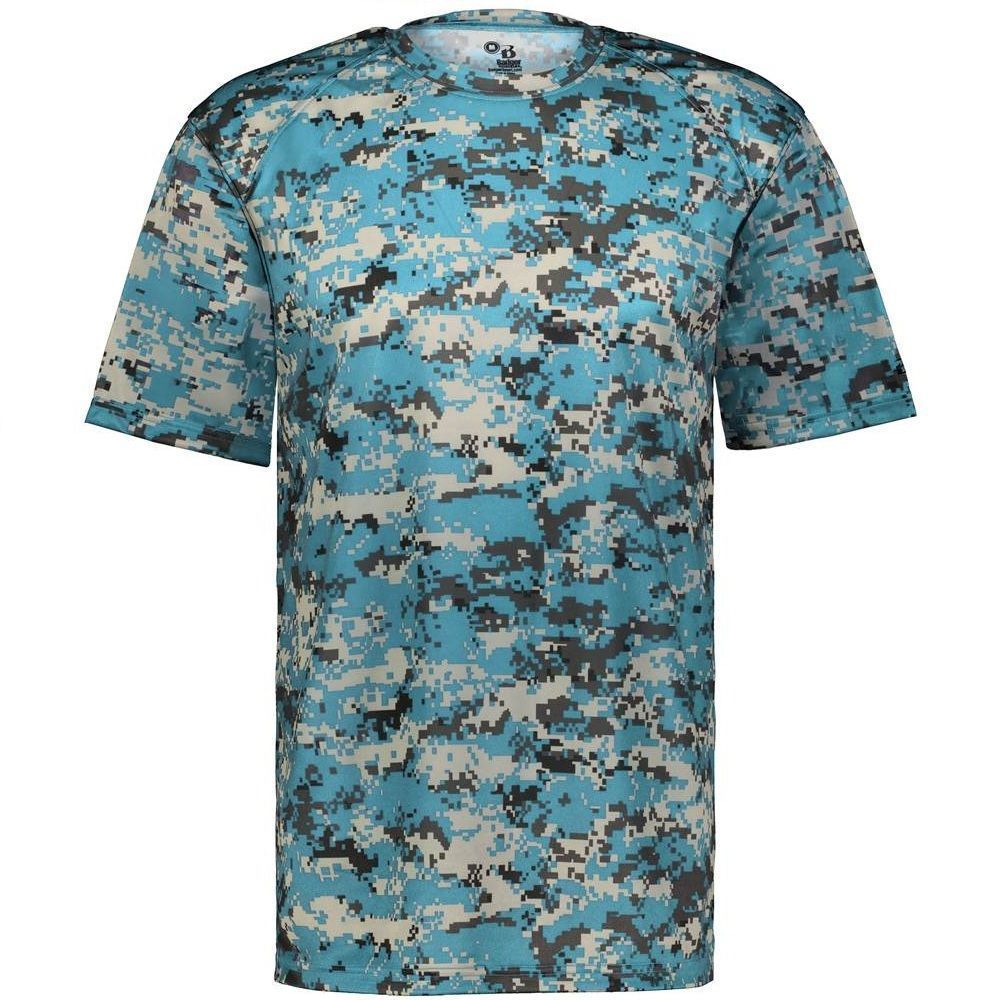 Badger B-Dry Wicking Digital Camo T Shirt features a 100% polyester antimicrobial / moisture wicking fabric that pulls sweat away from the skin for easy evaporation. Badger 4180 wicking tee can be worn under a jersey or alone. This shirt has a self fabric collar and double needle bottom hem. Tagless heat-seal label.