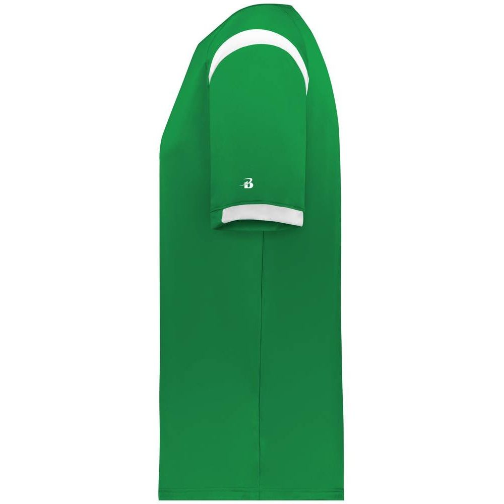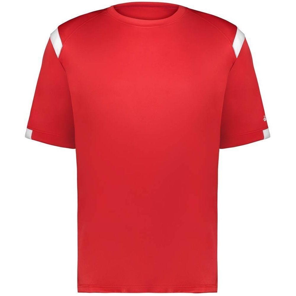 Badger 4251 Rise crew jersey features a 100% polyester antimicrobial / moisture wicking interlock fabric that pulls sweat away from the skin for easy evaporation. Badger 4251 jersey crew has contrast color shoulder / sleeve inserts, self fabric crew collar and double needle bottom hem. Tagless heat-seal label.