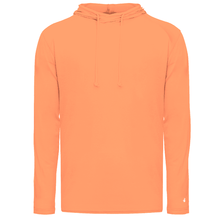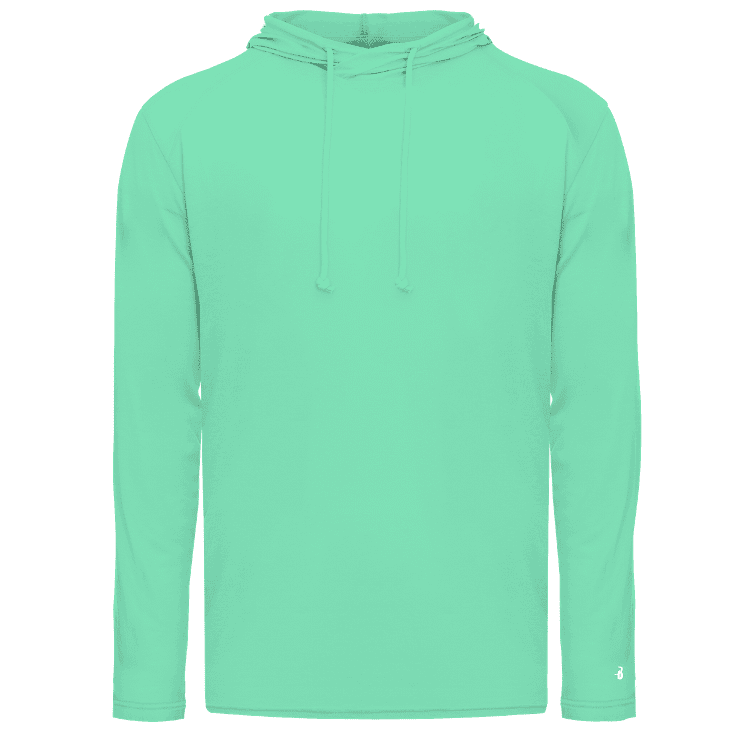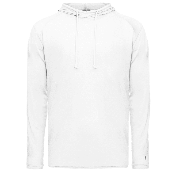 features a 65% wicking polyester / 25% cotton / 10% rayong fabric blend with antimicrobial finish. Badger hoodie has a self fabric hood with drawstring and double needle bottom hem. Tagless heat-seal label.