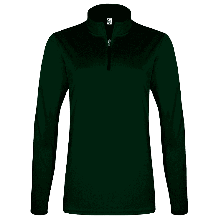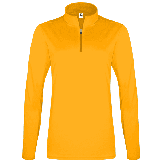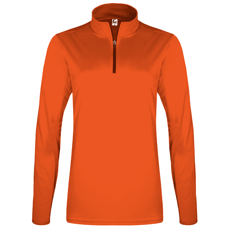 features a 100% polyester moisture wicking fabric that pulls sweat away from the skin for easy evaporation. Badger 5602 ladies 1/4 zip long sleeve shirt has a self fabric collar with 8" locking zipper, long sleeve design and double needle bottom hem. Tagless heat-seal label.