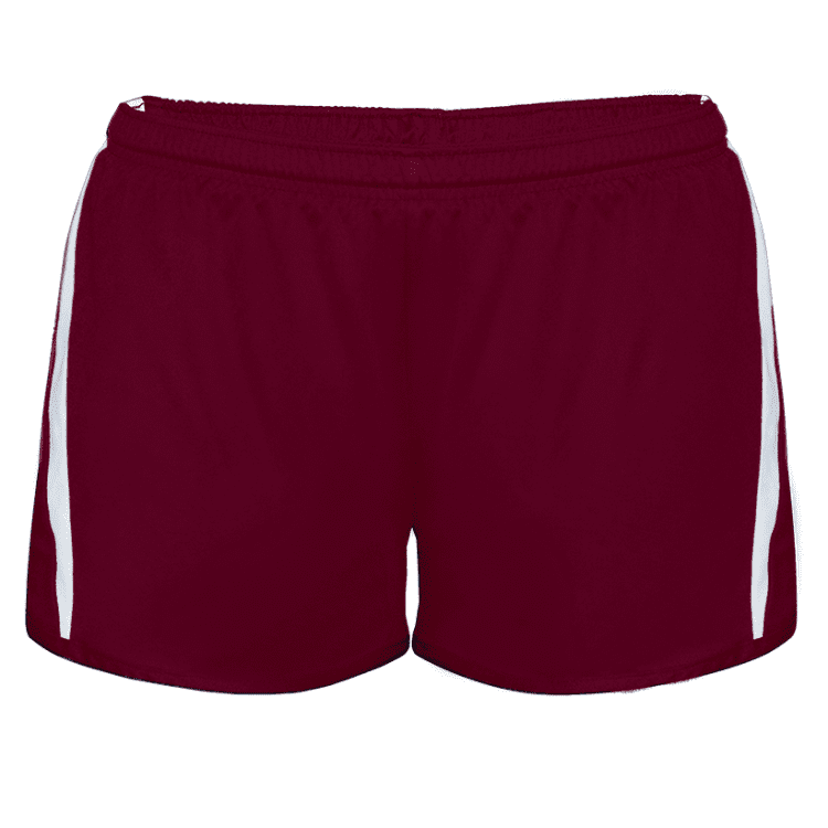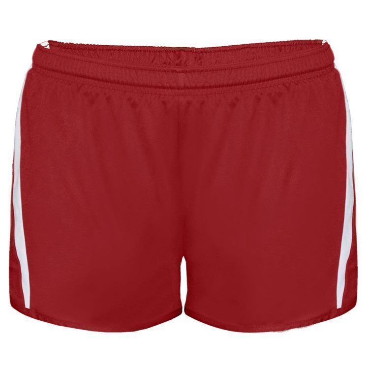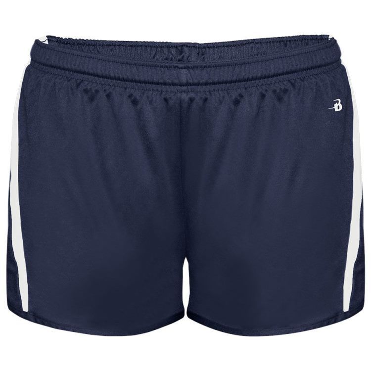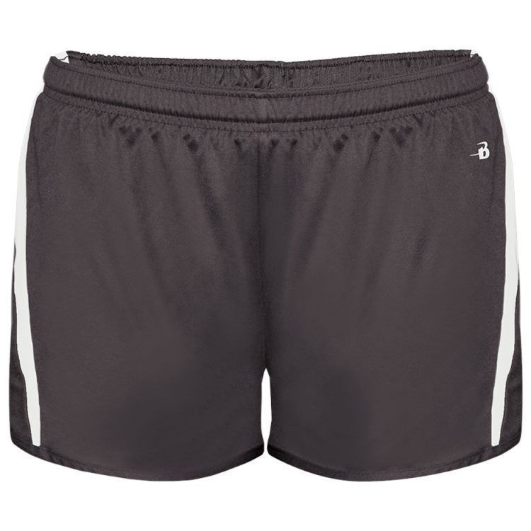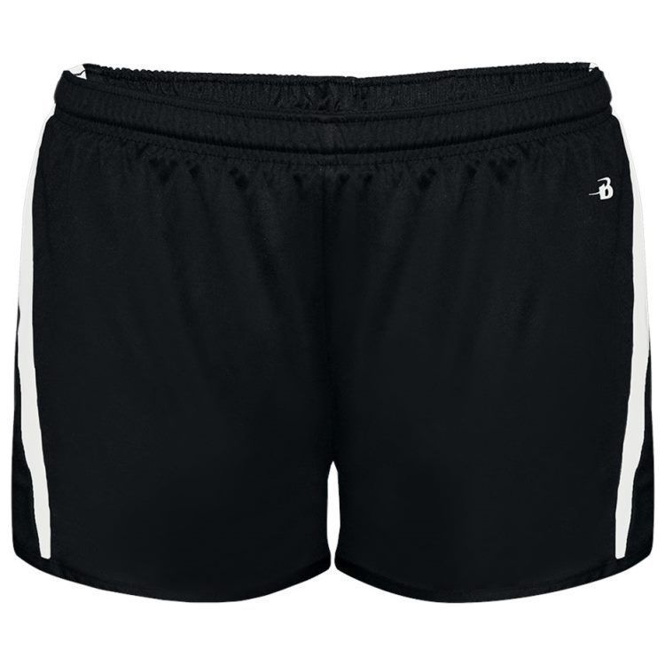 Badger 7274 Womens Stride wicking track shorts feature 100% polyester moisture wicking fabric with antimicrobial finish for no odor. Badger 7274 ladies track shorts also a feature a covered elastic waistband, contrast color inserts, side vents and a self fabric binding hem.