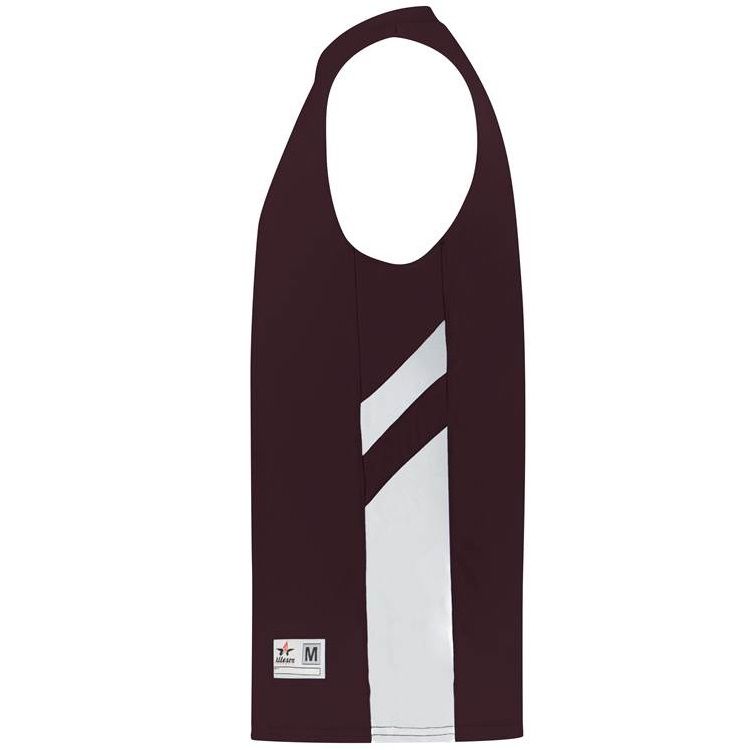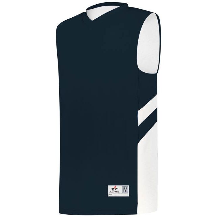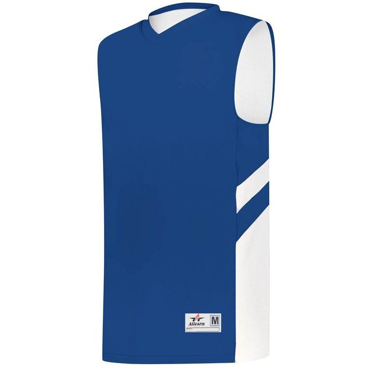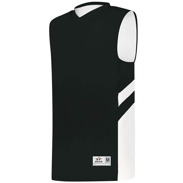 Alleson 8566 B-Pivot wicking reversible basketball jersey features 100% polyester wicking material to keep you dry and comfortable. Alleson 8566 reversible basketball jersey also features an antimicrobial finish, v-neck, contrast color side stripes, wide shoulder design, collegiate cut, Badger jock tag and double needle hemmed bottom.