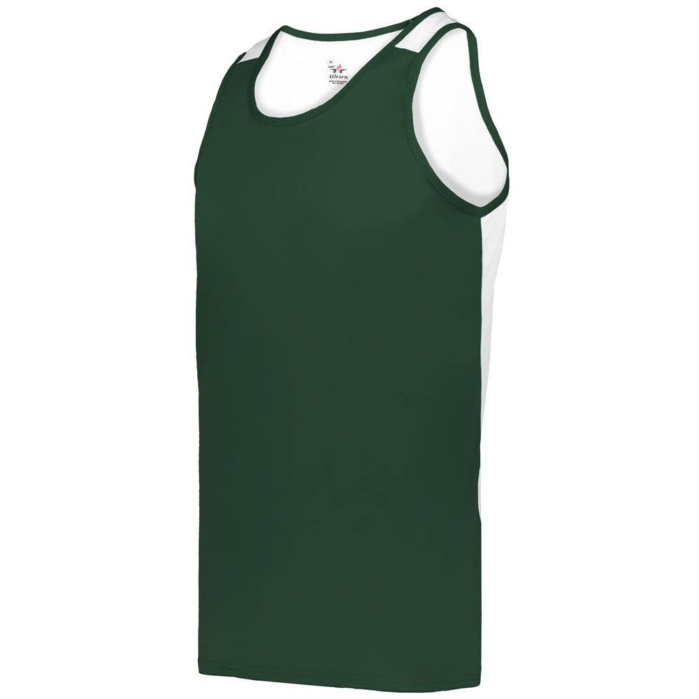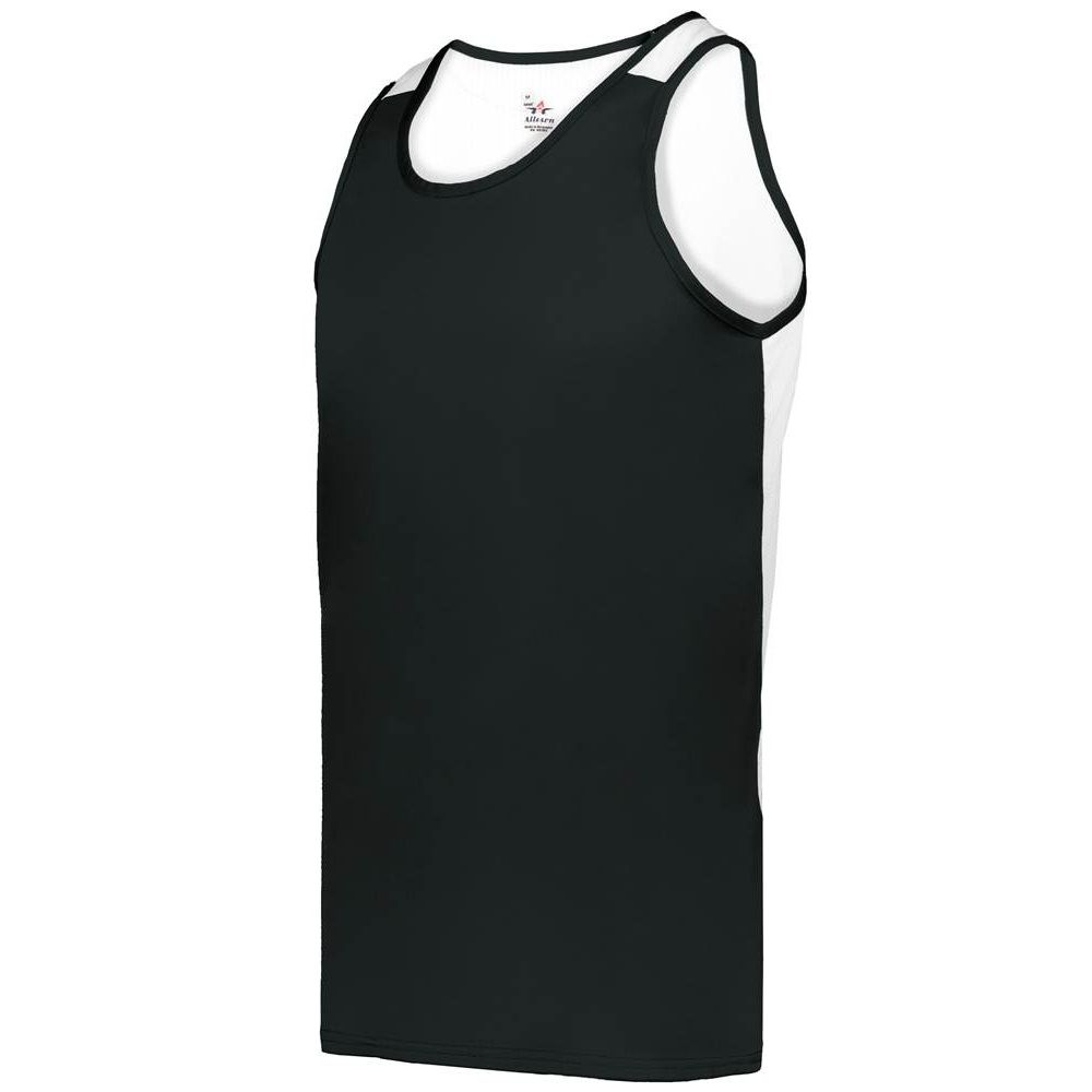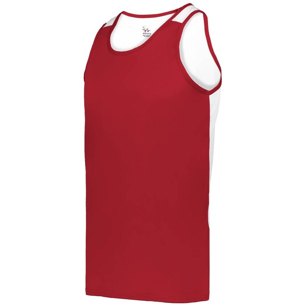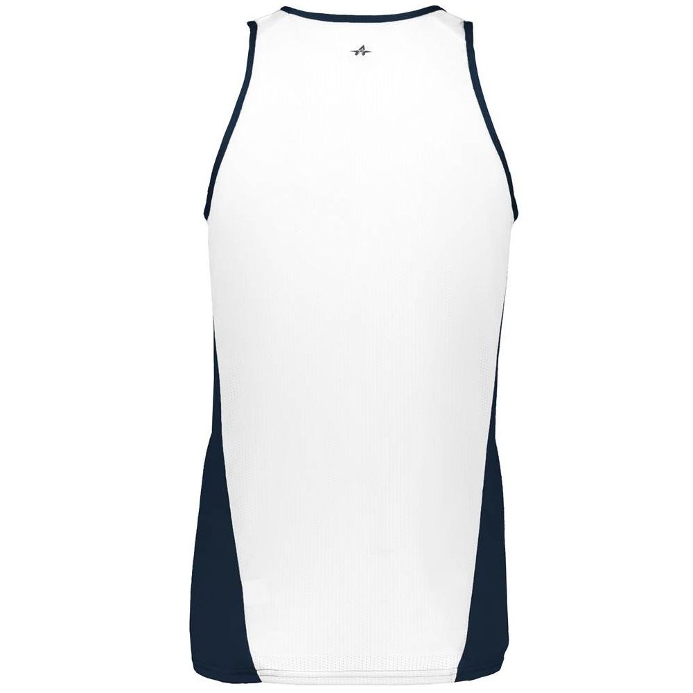 Alleson 8668 Ventback Track Singlet features moisture wicking polyester fabric that pulls moisture away from the skin. Alleson 8668 track tank also has an antimicrobial treatment for no odor, contrasting color arrow mesh back panel, self binding neck & armholes, heat seal neck and two needle stitching at hems.